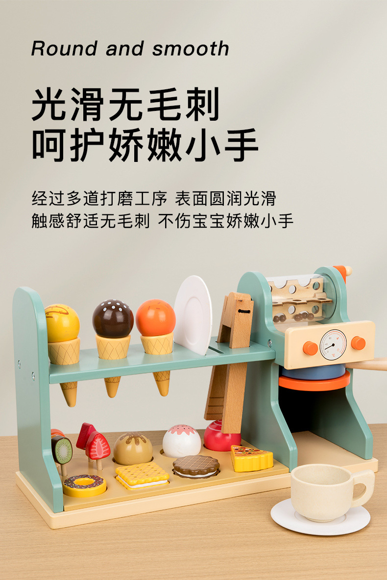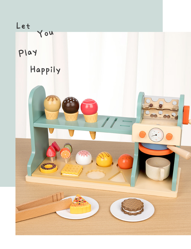 놀이 주방 장난감 나무 소년과 소녀 디저트 가게 아이스크림 아이스크림 차 세트 나무 어린이 장난감