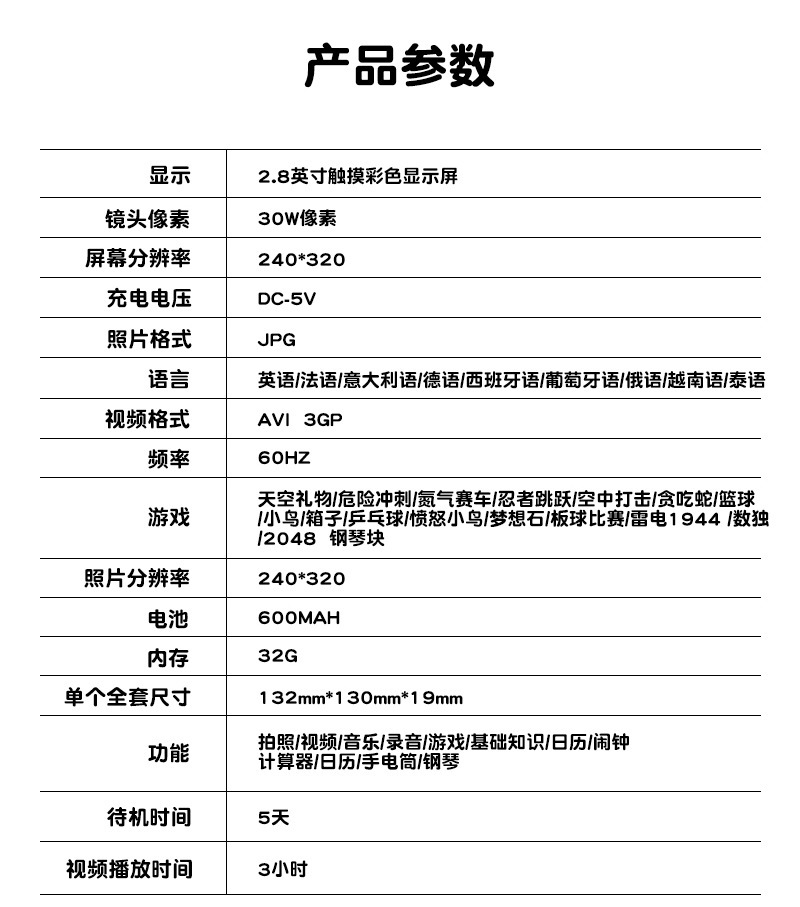 어린이 휴대 전화 카메라 HD 사진 및 비디오 SLR 카메라 어린이 디지털 다기능 대형 스크린 조기 교육 비디오 레코더
