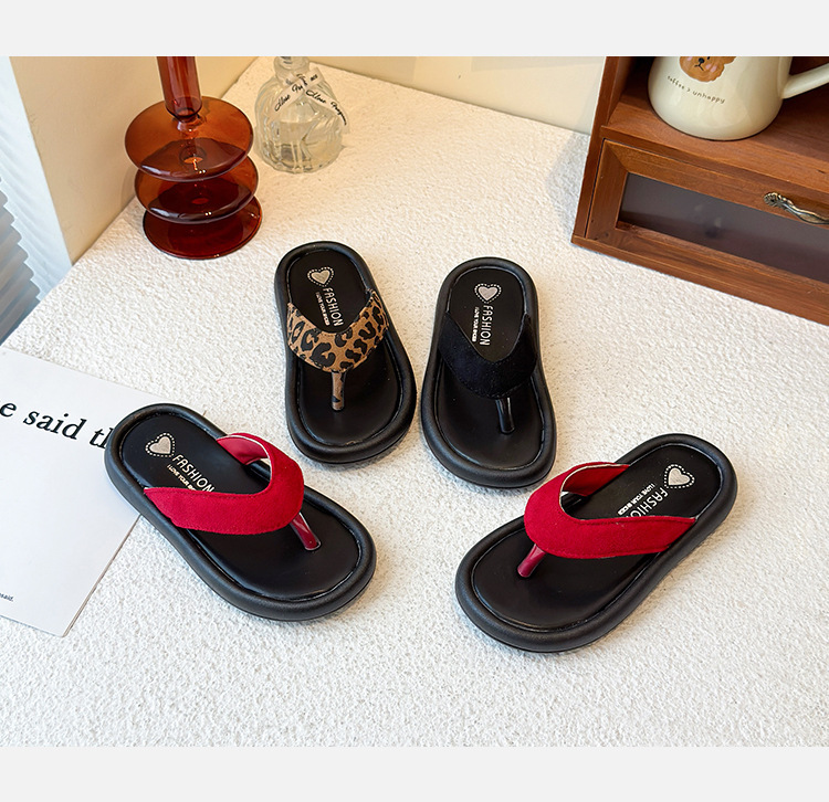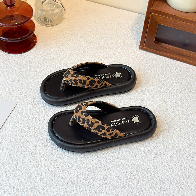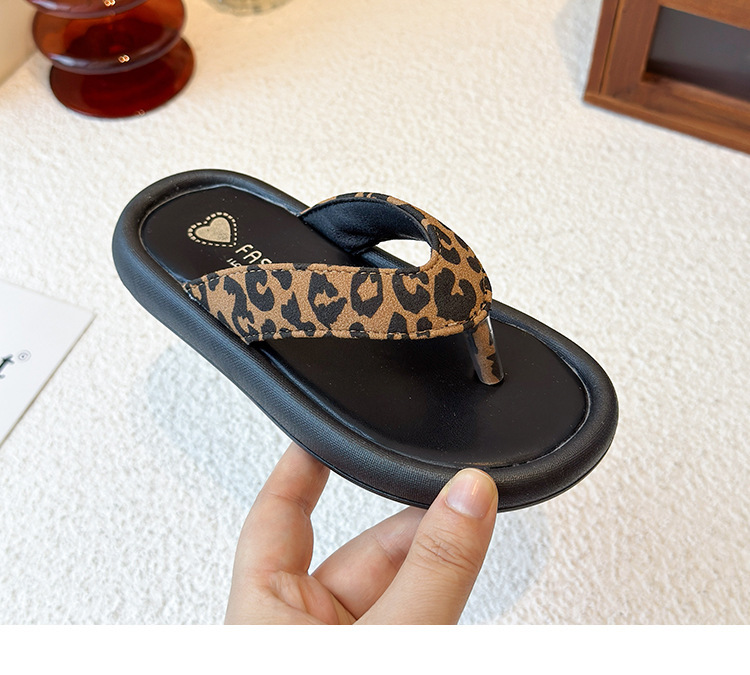 여자 패션 레오파드 인쇄 플립 플롭 2025 여름 새로운 부드러운 바닥 겉옷 소년 미끄럼 방지 해변 신발 샌들