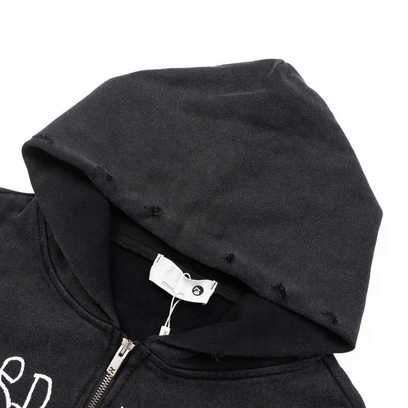2025년 크로스보더 트렌드 아메리칸 스타일 워싱 레트로 디스트로이드 빈티지 지퍼 후드티 자켓스토어 가기