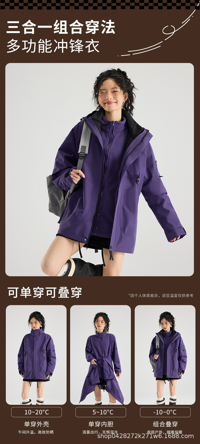 산악 스타일 재킷 2025년 신상 3-in-1 소형 사이즈 하이킹 커플 트렌디 패션 아우터