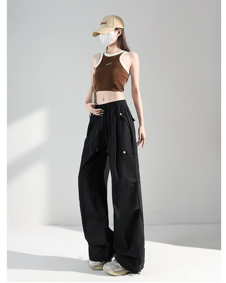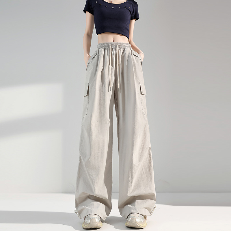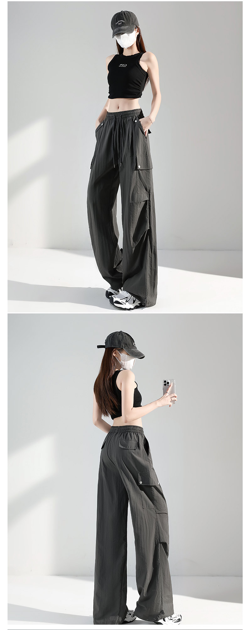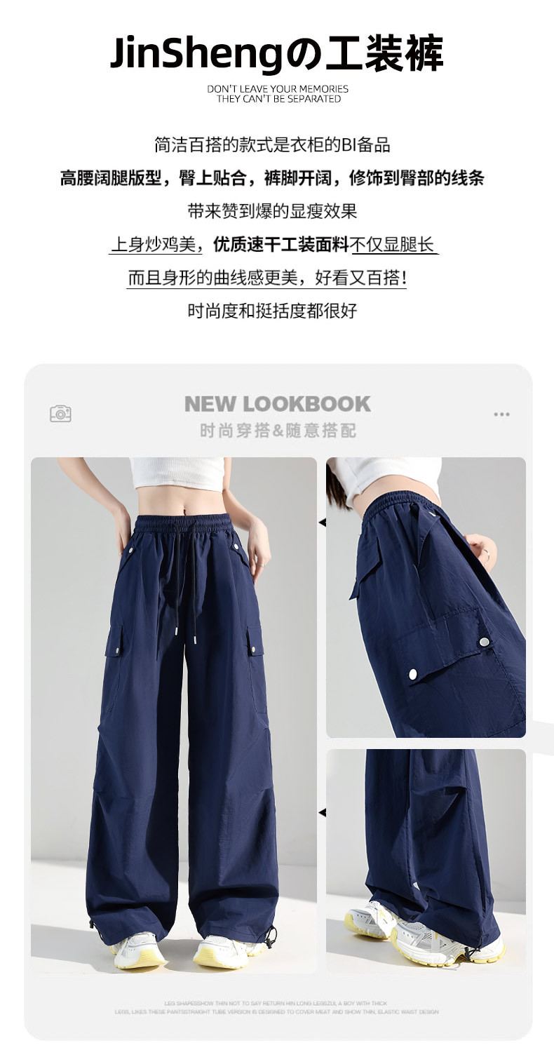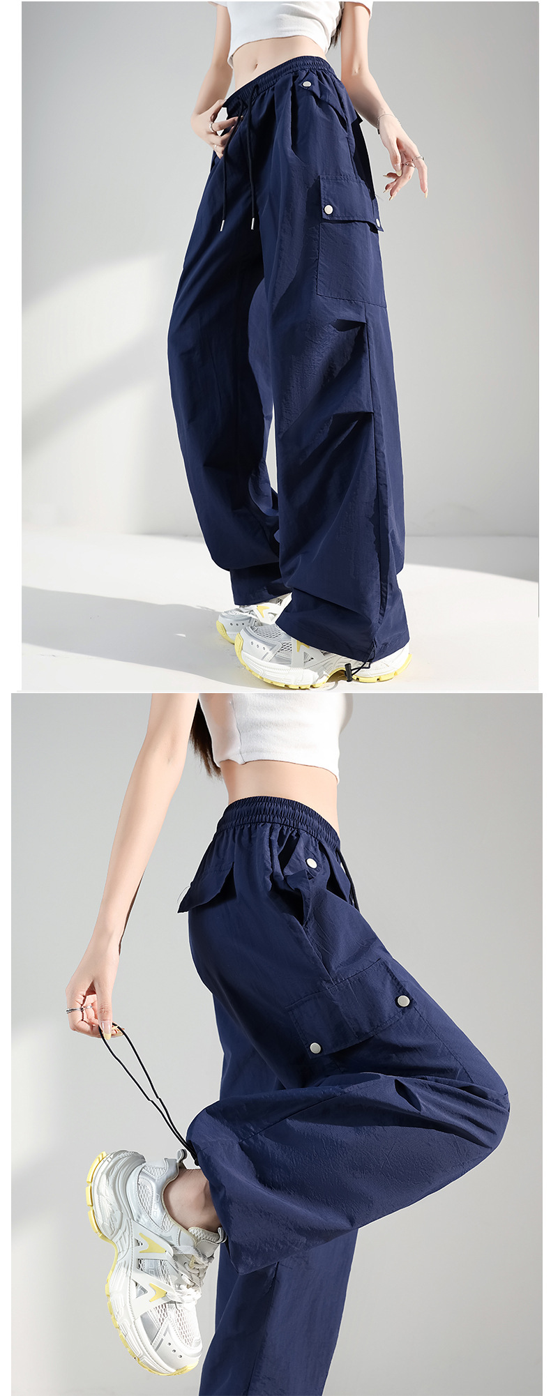 실제 샷 네이비 블루 카고 팬츠, 등산복, 속건 포켓 스타일, 루즈하고 슬림한 발, 여성용 2웨이 캐주얼 바지스토어 가기