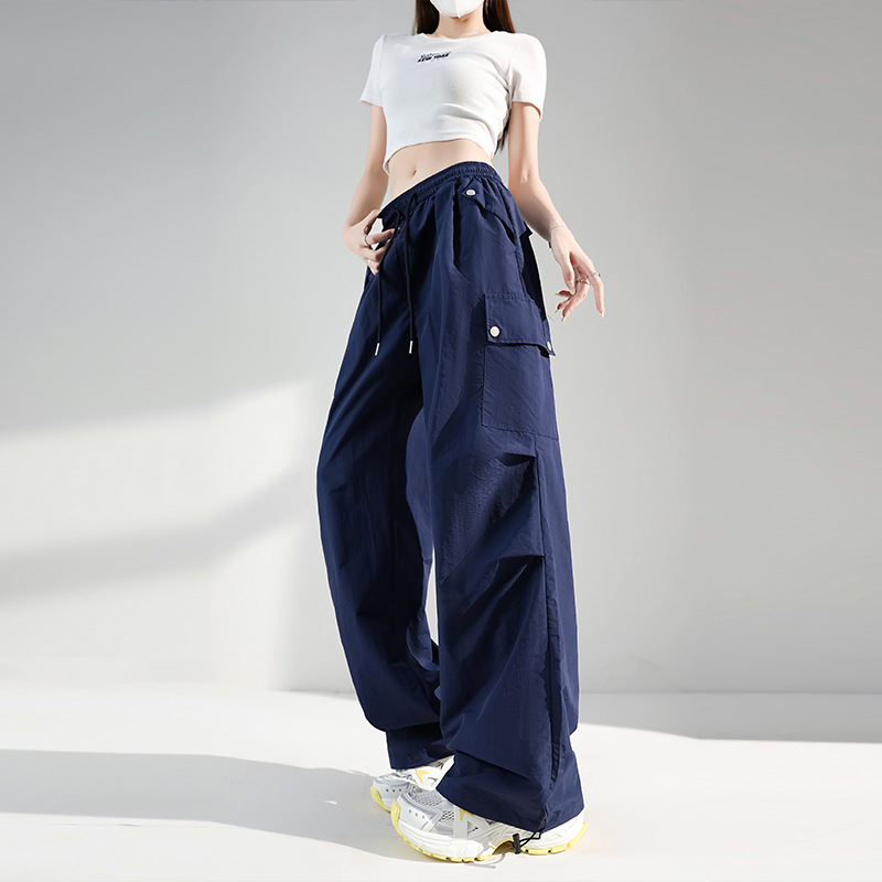 실제 샷 네이비 블루 카고 팬츠, 등산복, 속건 포켓 스타일, 루즈하고 슬림한 발, 여성용 2웨이 캐주얼 바지