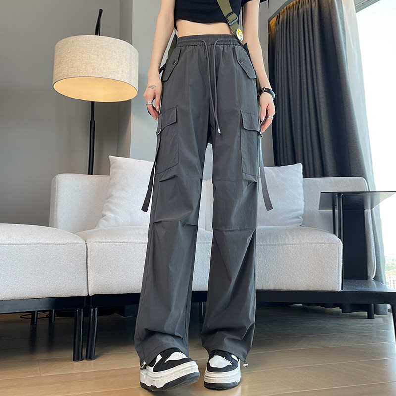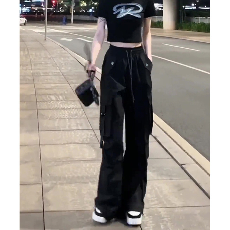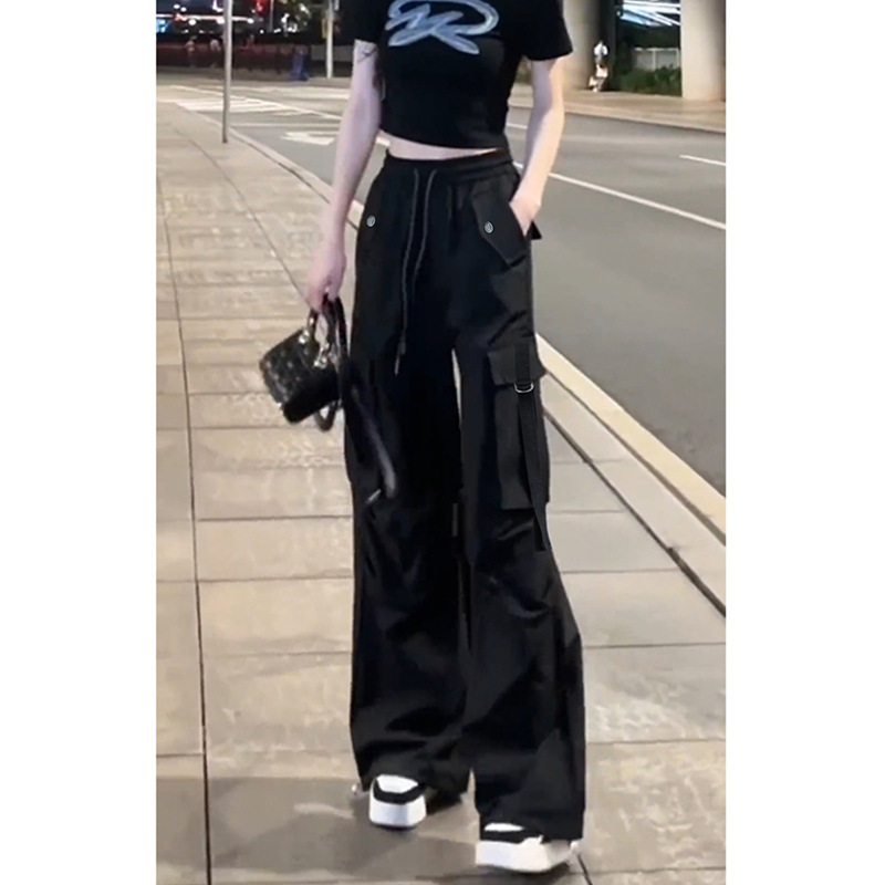 여성용 블랙 속건성 작업복 여름 2025 새로운 스타일 작은 미국 복고풍 느슨한 스트레이트 등산 와이드 팬츠스토어 가기