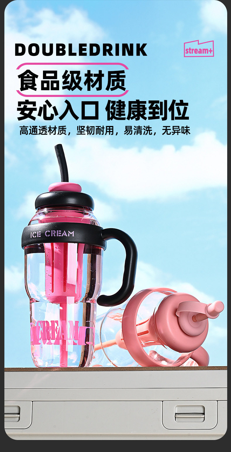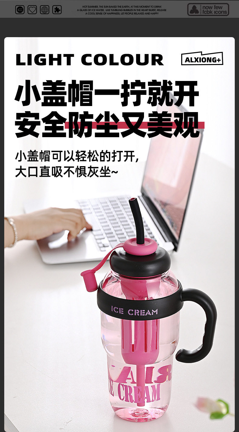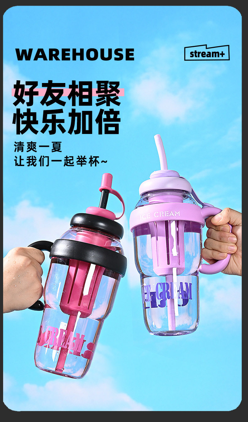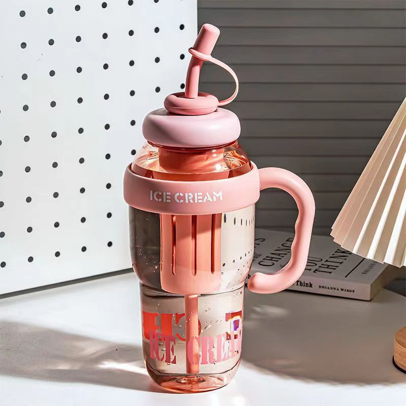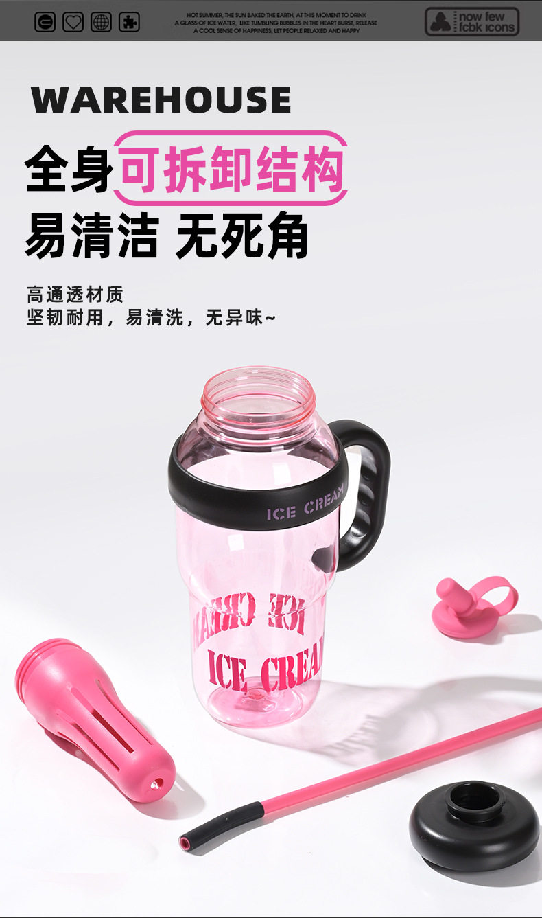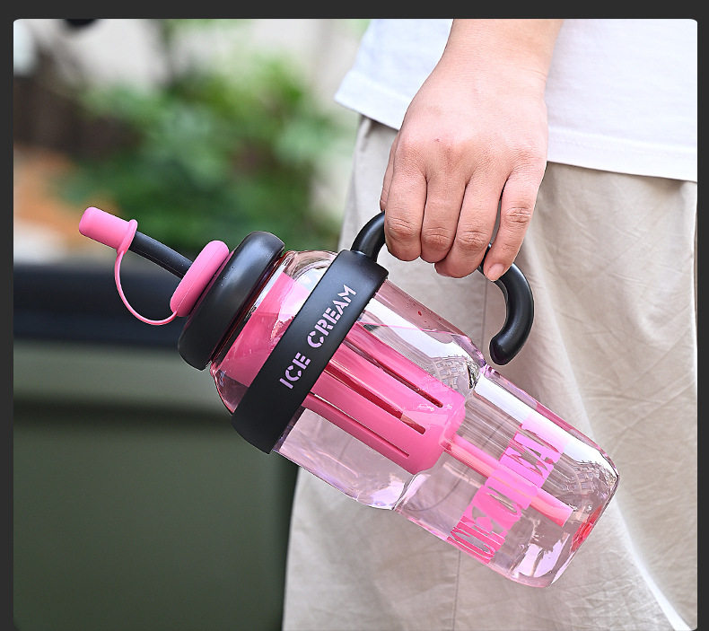 여름 신선하고 대용량 플라스틱 아이스 컵, 귀여운 스타일의 밀짚 컵, 고급스러운 자전거 물병 및 컵