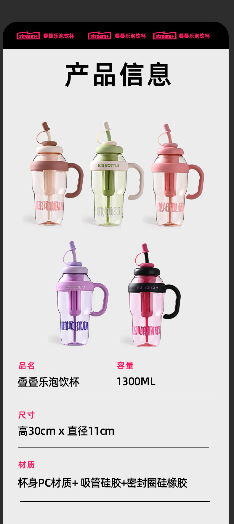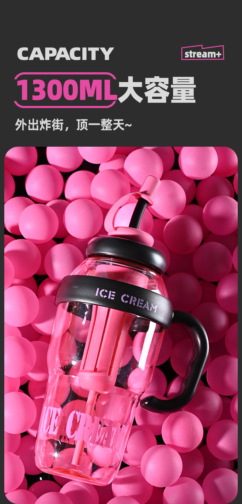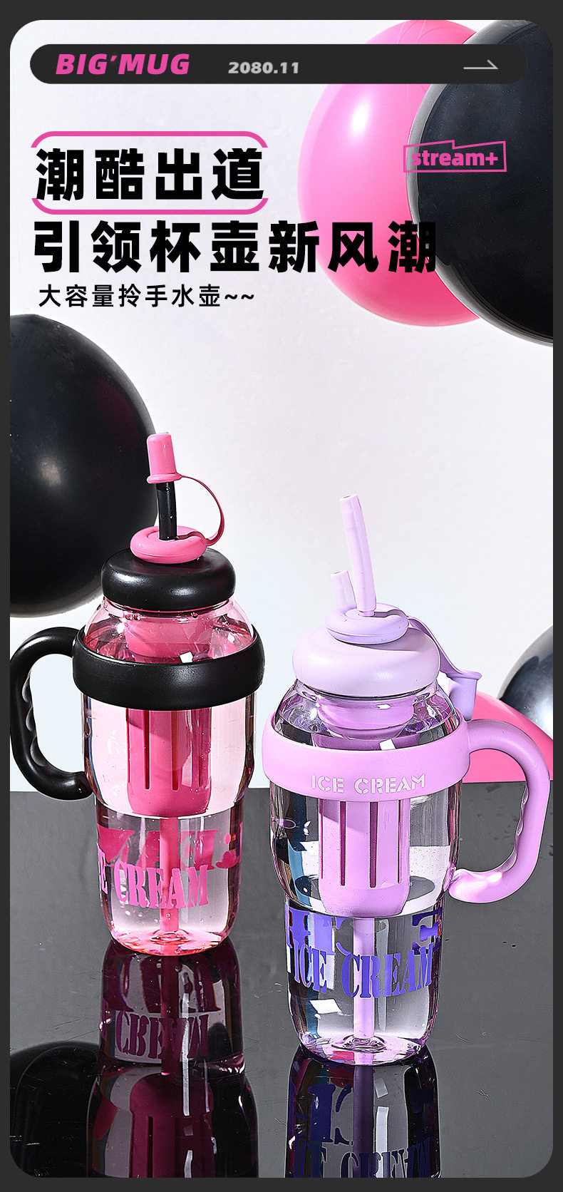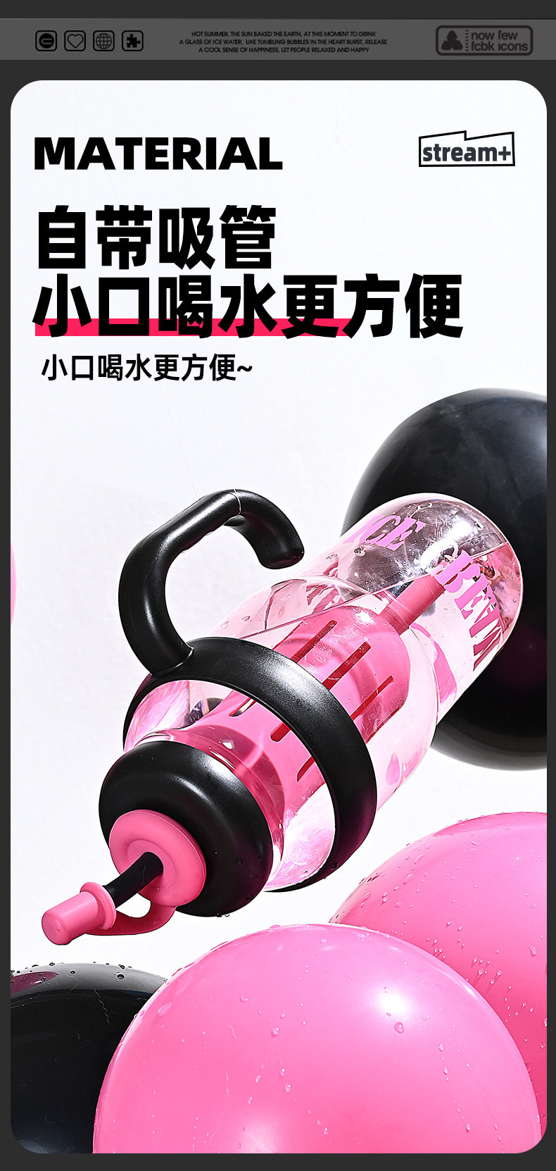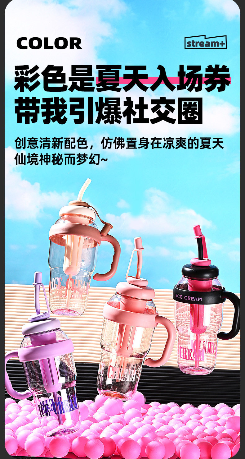 여름 신선하고 대용량 플라스틱 아이스 컵, 귀여운 스타일의 밀짚 컵, 고급스러운 자전거 물병 및 컵