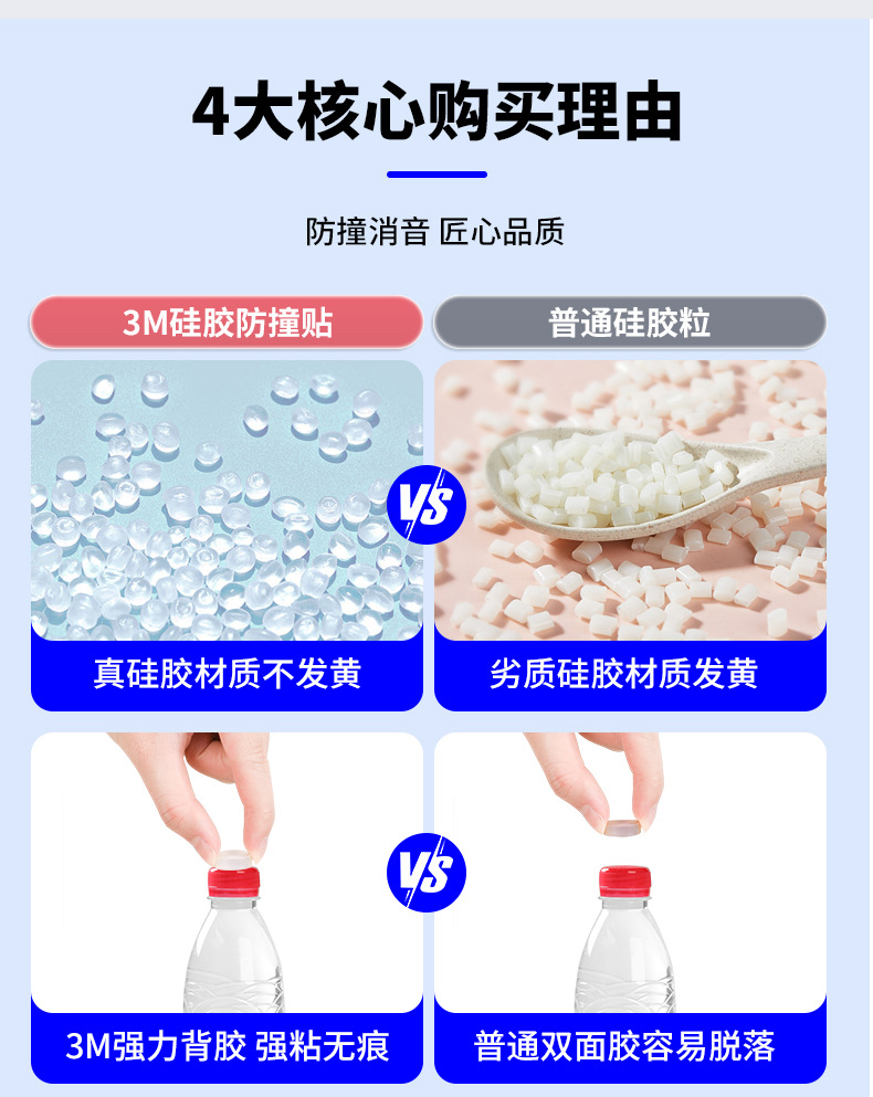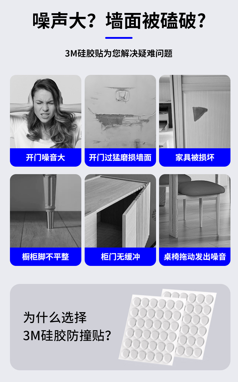 3m 접착제, 강력한 접착제, 충격 흡수, 미끄럼 방지 실리콘 발 패드, 도어 핸들, 캐비닛 도어 무음 패드가 있는 가정용 충돌 방지 실리콘 입자스토어 가기