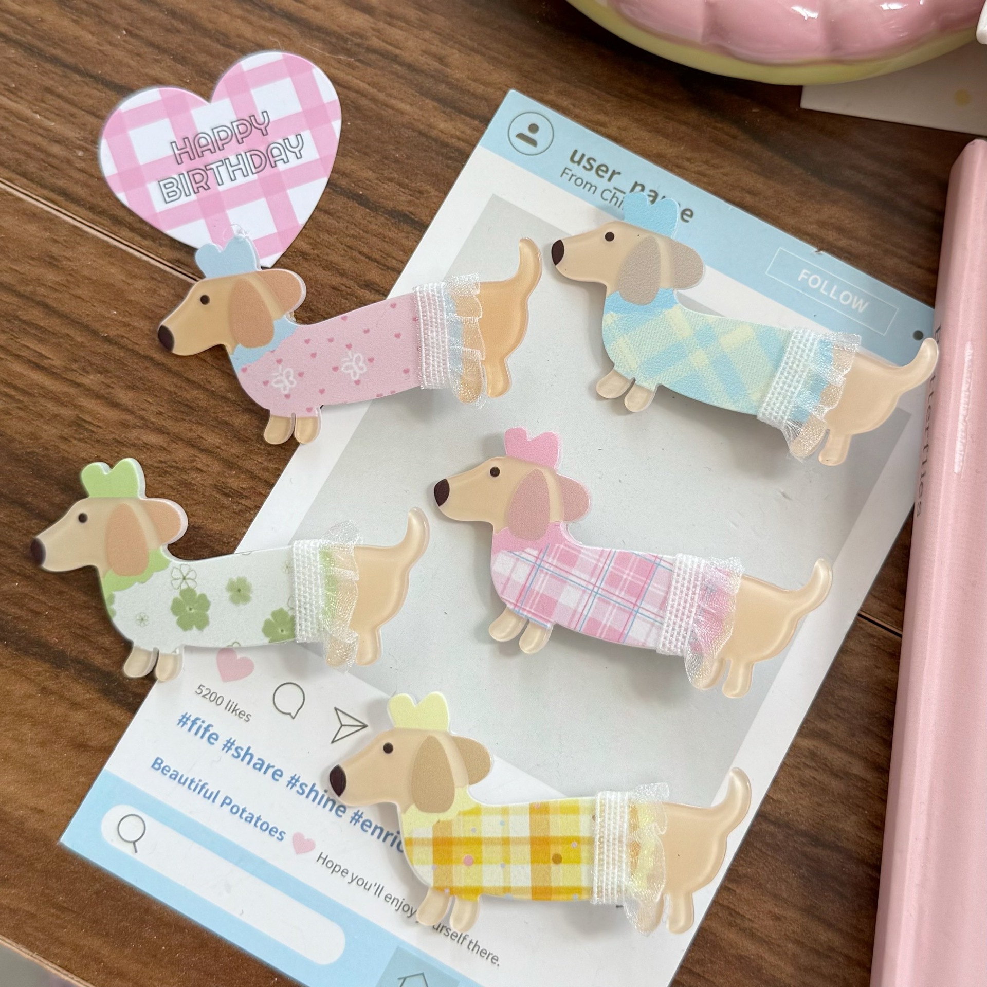 새로운 소녀 하트 스커트 닥스훈트 아크릴 머리핀 ins 달콤한 소녀 하트 앞머리 사이드 만화 머리 장식스토어 가기