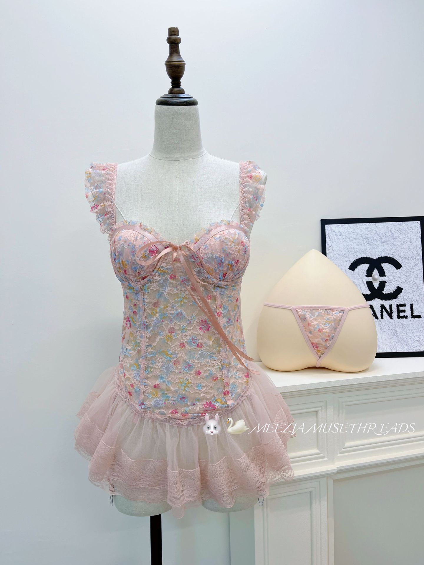 • 소프트 핑크 안감 (스트랩 나이트가운 + 끈팬티)