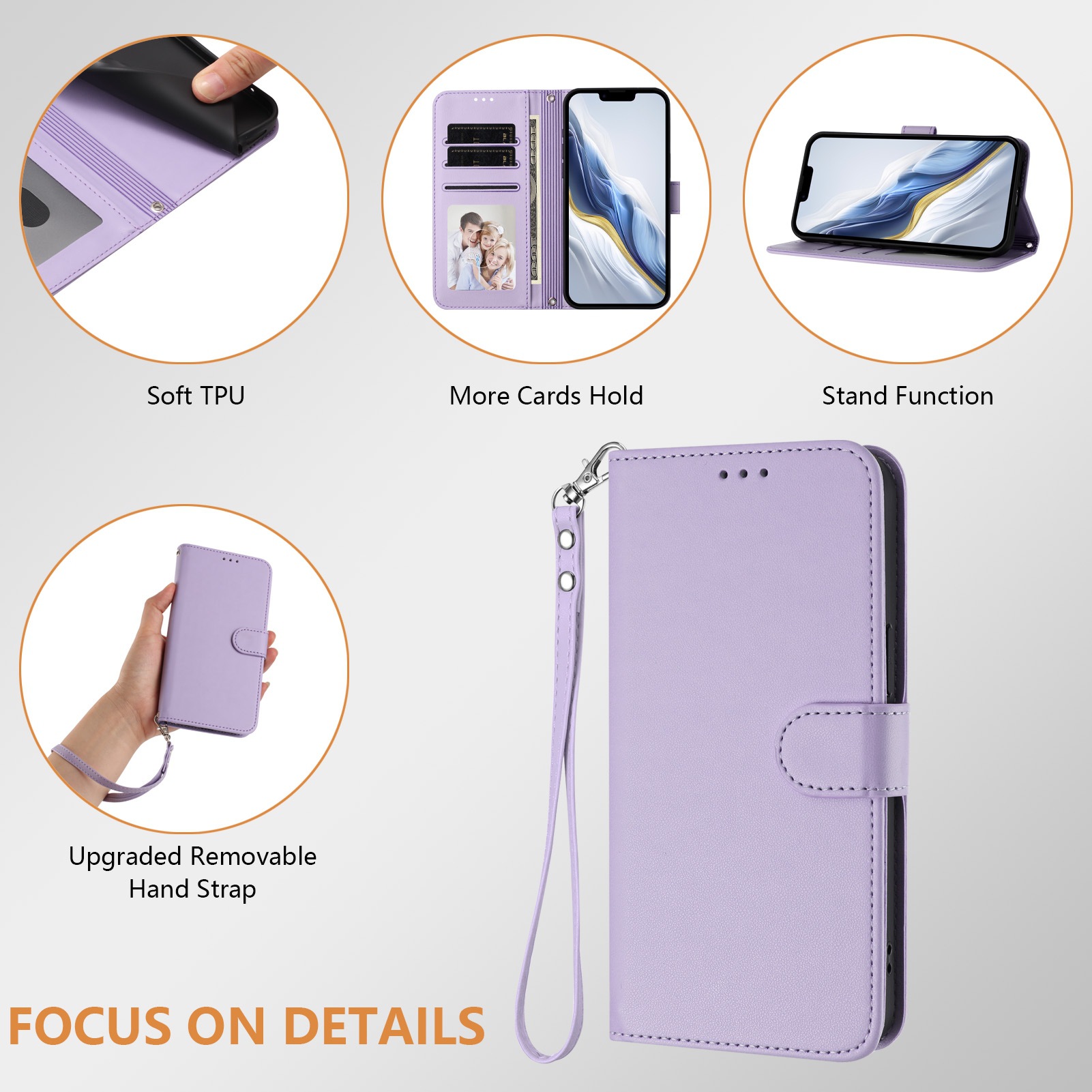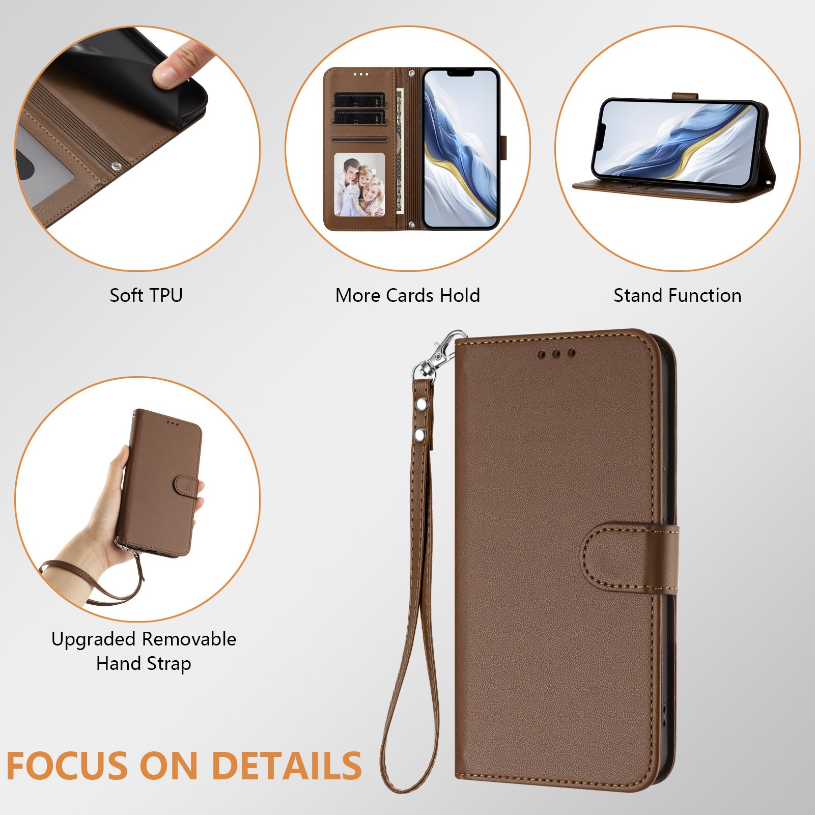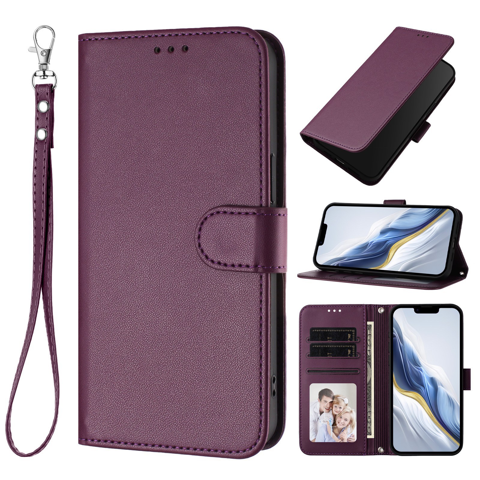 Honor X9/8/6 휴대폰 케이스에 적합한 새로운 스타일, 솔리드 컬러 가죽 질감 카드 끈 플립 가죽 케이스, 플레이용