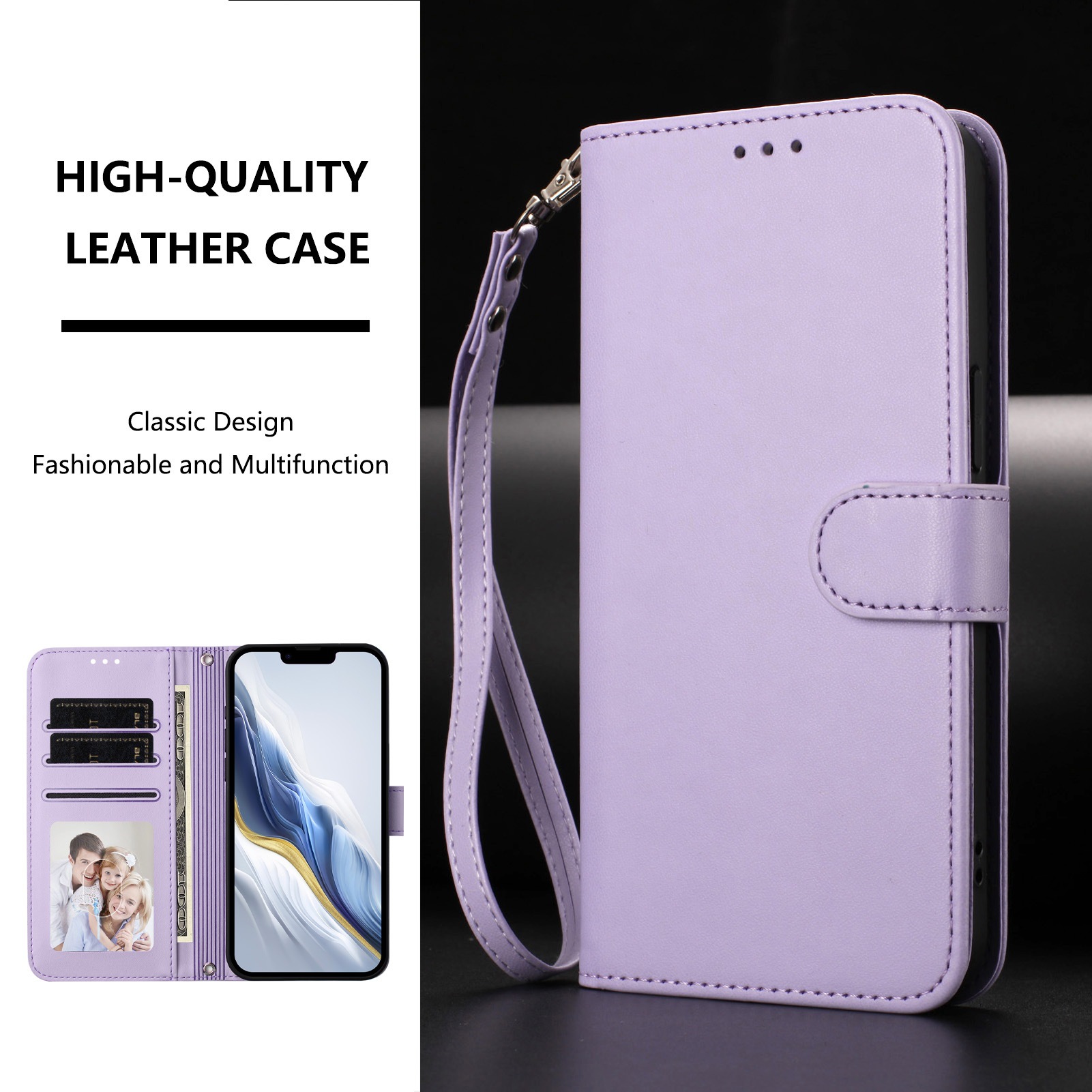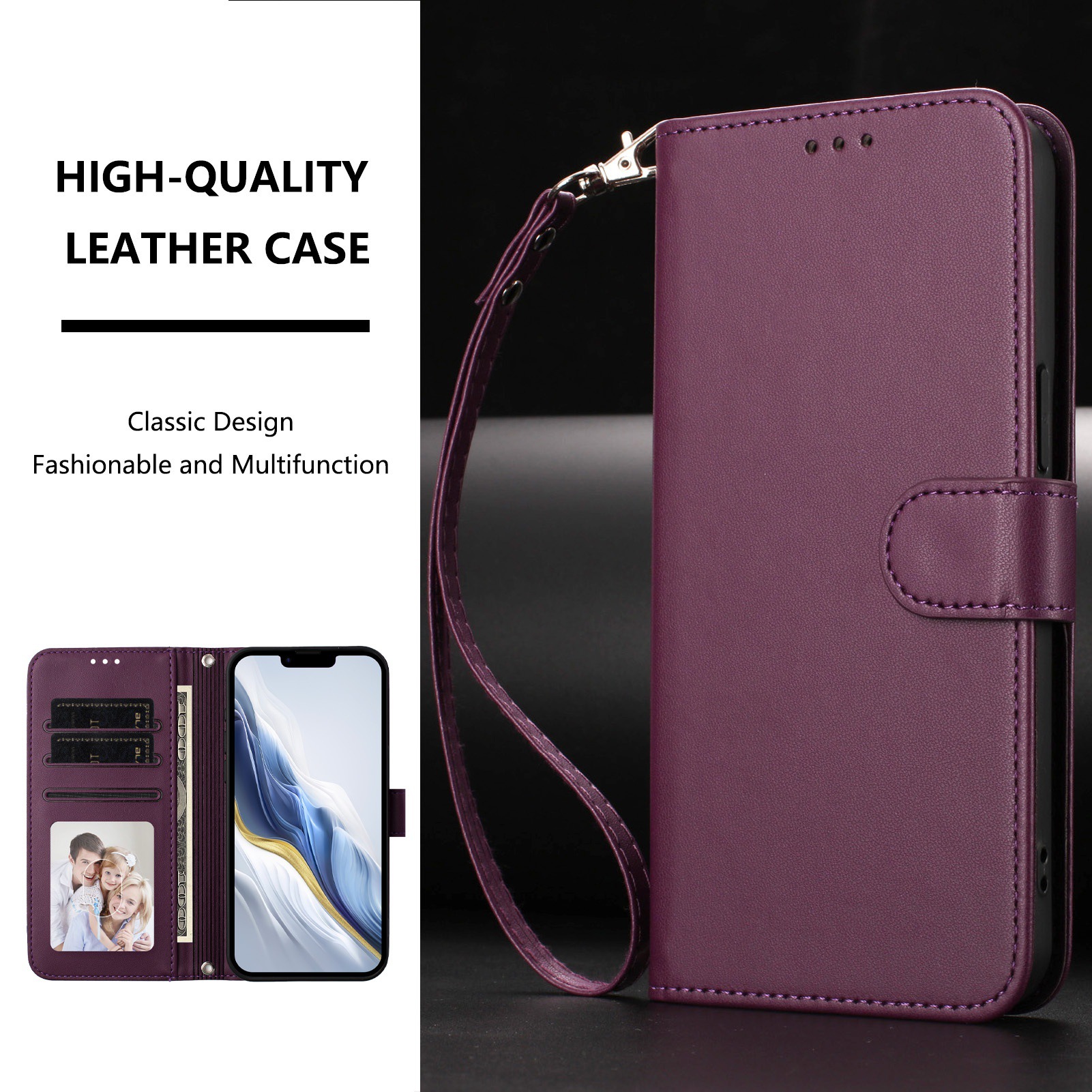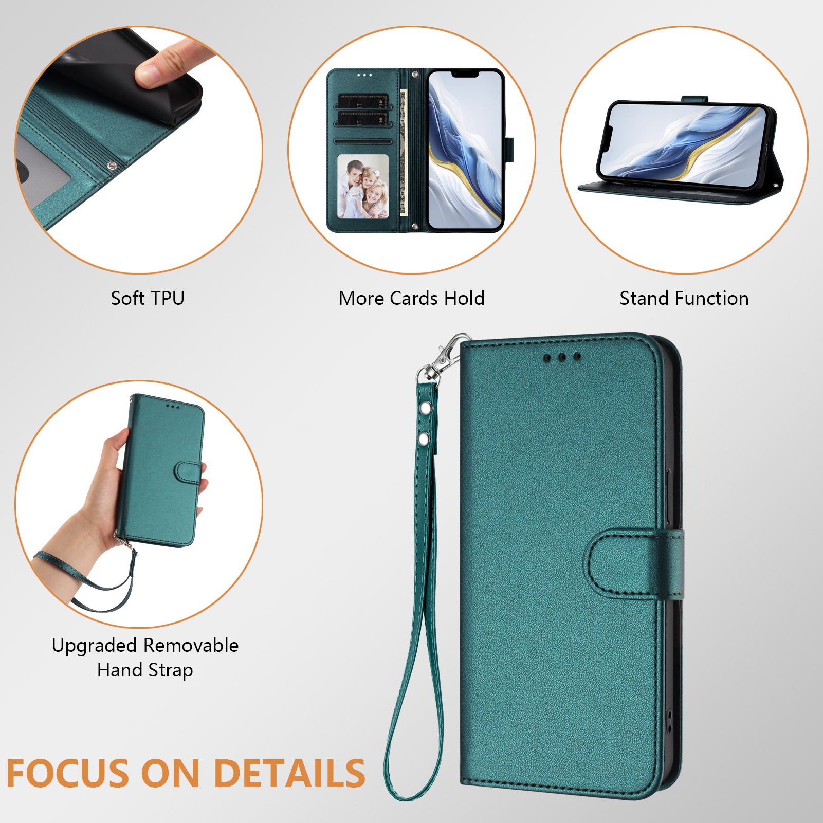 Honor X9/8/6 휴대폰 케이스에 적합한 새로운 스타일, 솔리드 컬러 가죽 질감 카드 끈 플립 가죽 케이스, 플레이용