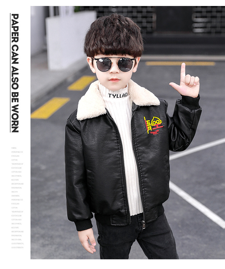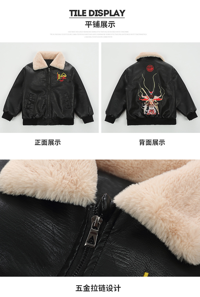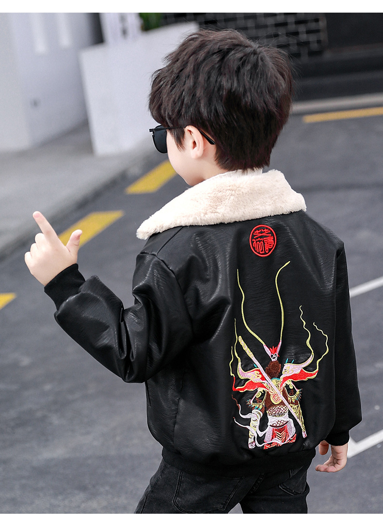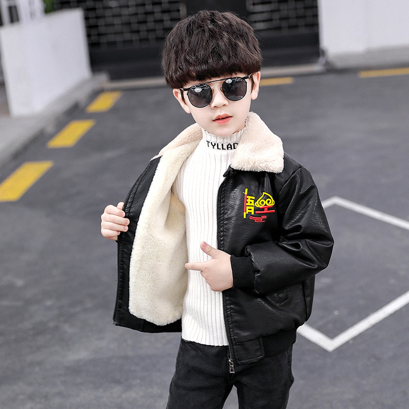 소년 가죽 자켓 2025 새로운 스타일 중소 어린이 가을, 겨울 의류 어린 소년 가죽 자켓 국가 유행 스타일 잘 생긴 플러스 벨벳 유행