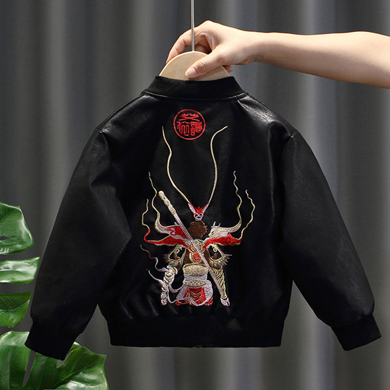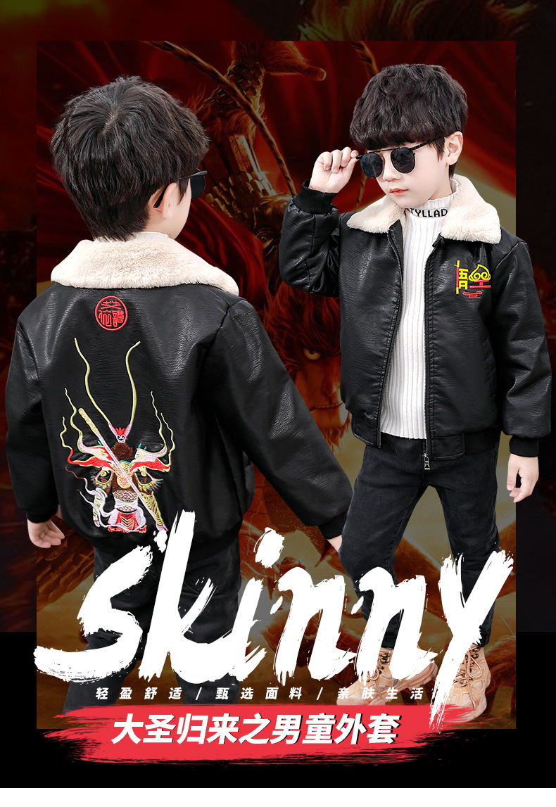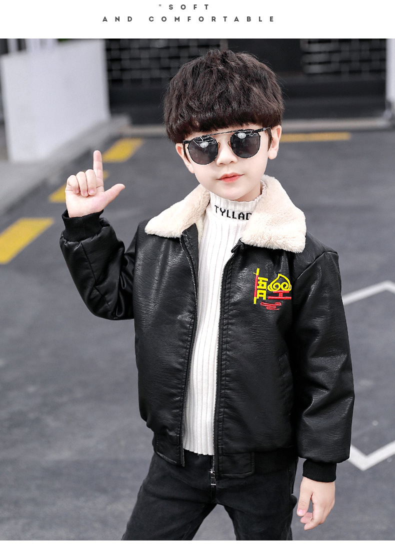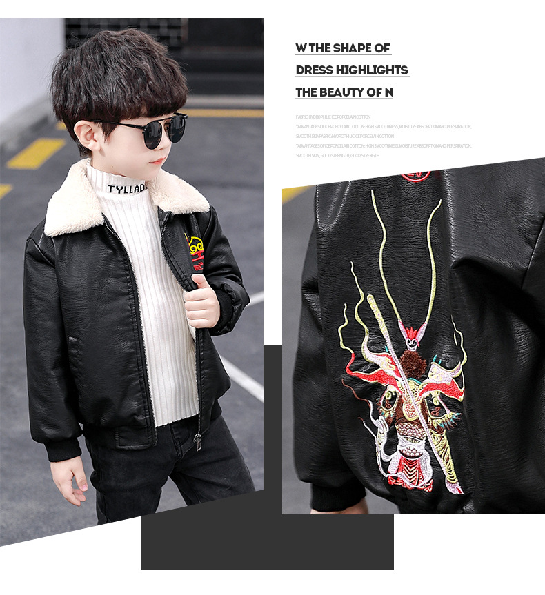 소년 가죽 자켓 2025 새로운 스타일 중소 어린이 가을, 겨울 의류 어린 소년 가죽 자켓 국가 유행 스타일 잘 생긴 플러스 벨벳 유행