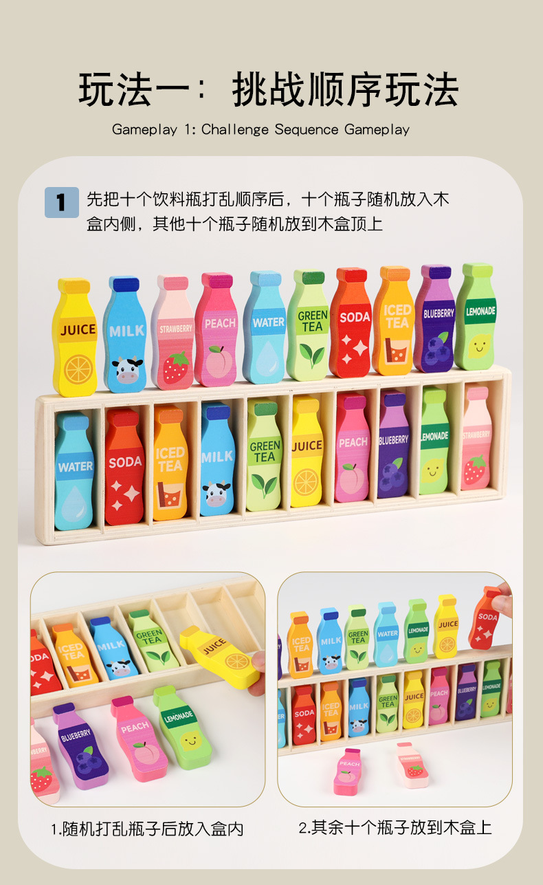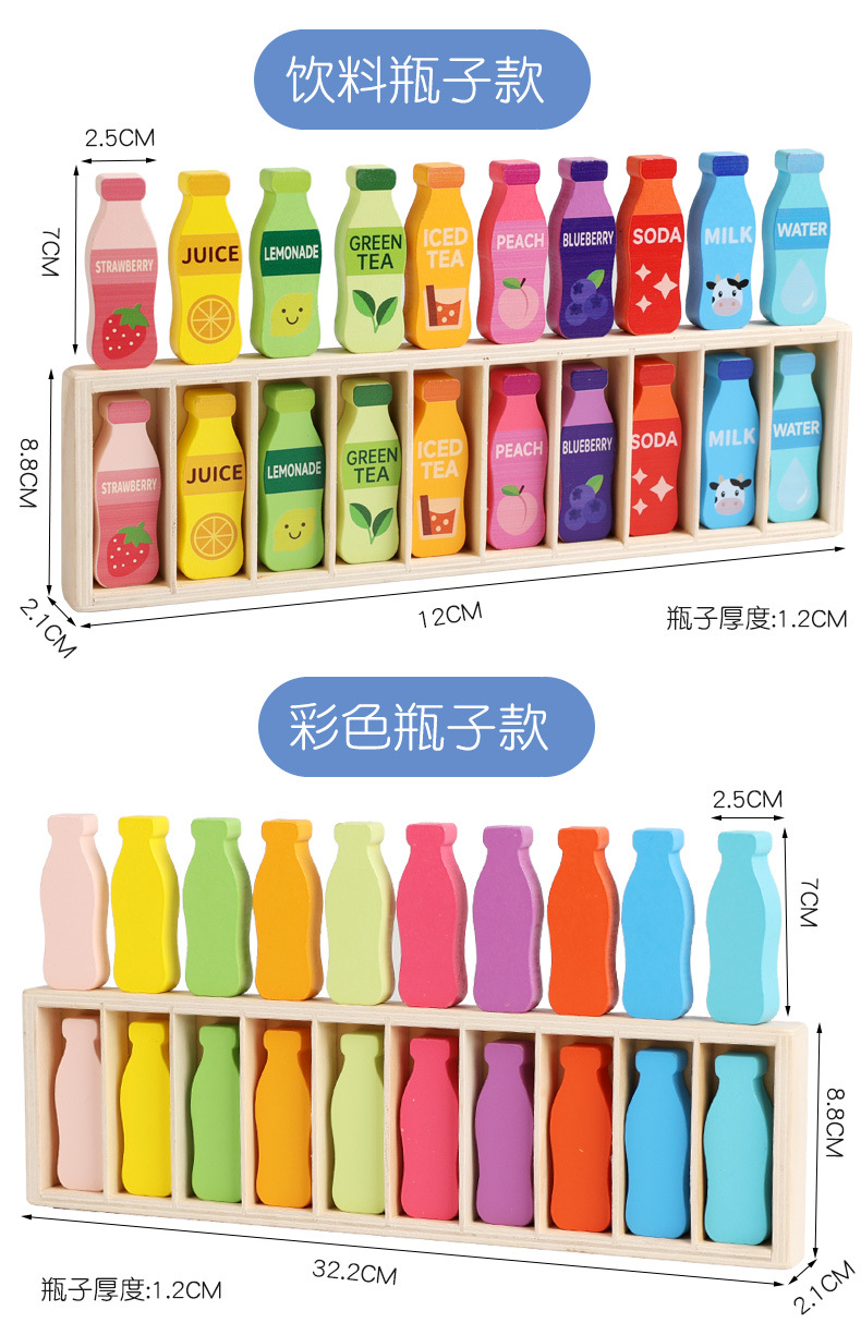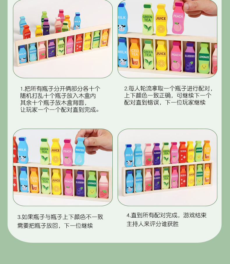 瓶子对对碰A/B款:彩盒33.5*10*3.5cm,装箱60套,单个净重0.4kg,外箱52*34.5*40cm,整箱毛重25cm