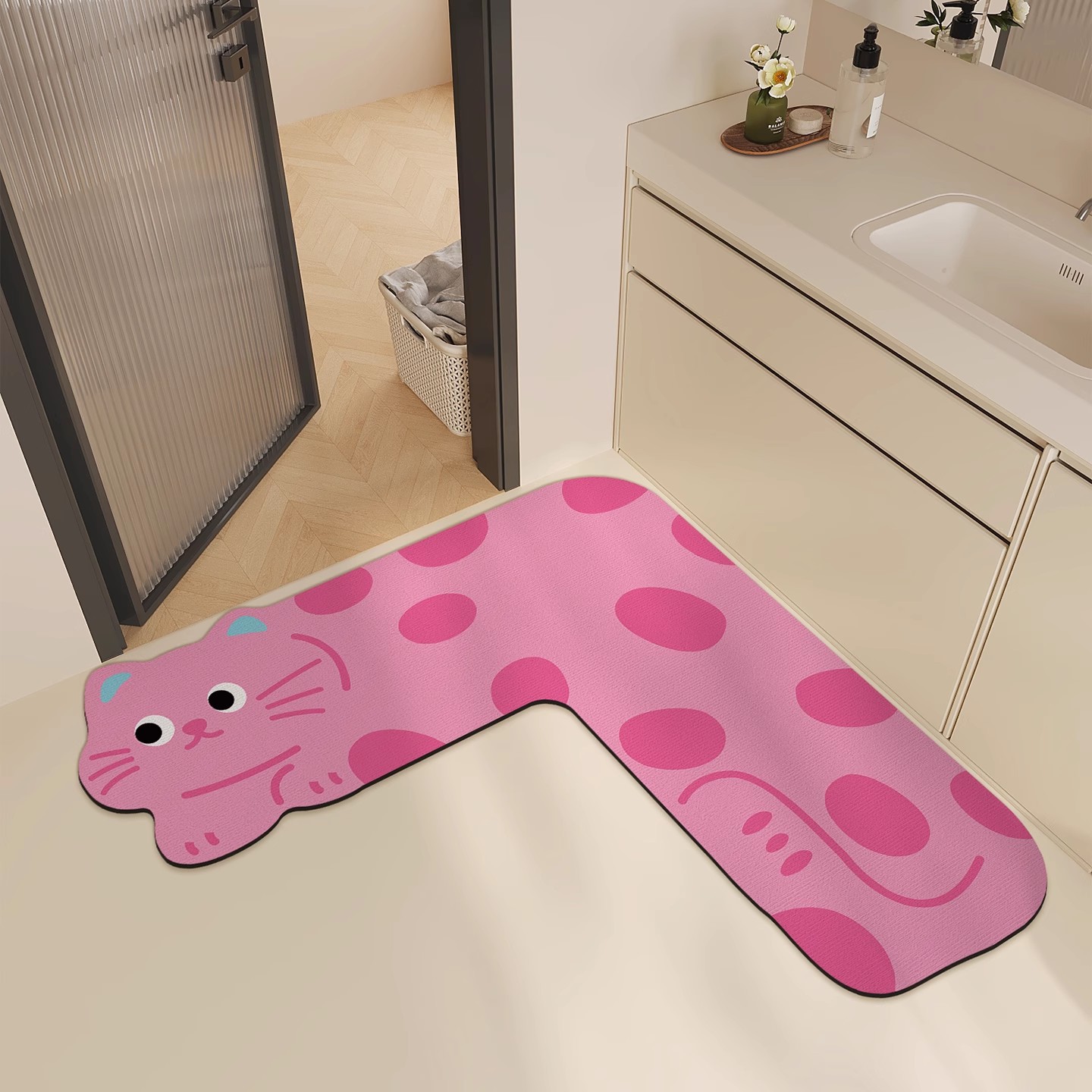 • 핑크캣 야옹 코너형 [흡수성, 미끄럼방지, 속건성]