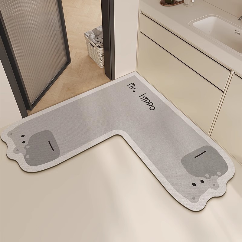 만화 욕실 바닥 매트 L 자형 코너 흡수성 속건성 발 매트 욕실 주방 화장실 문 화장실 카펫스토어 가기