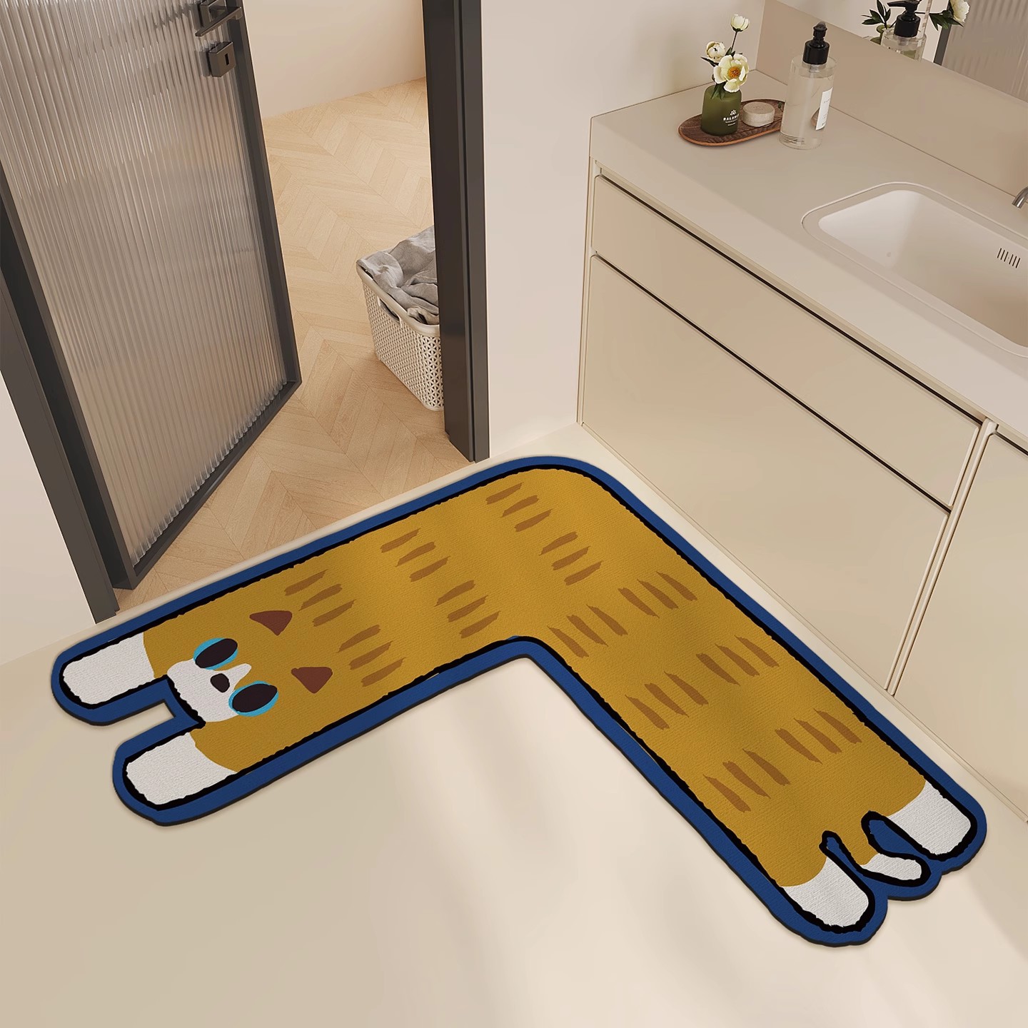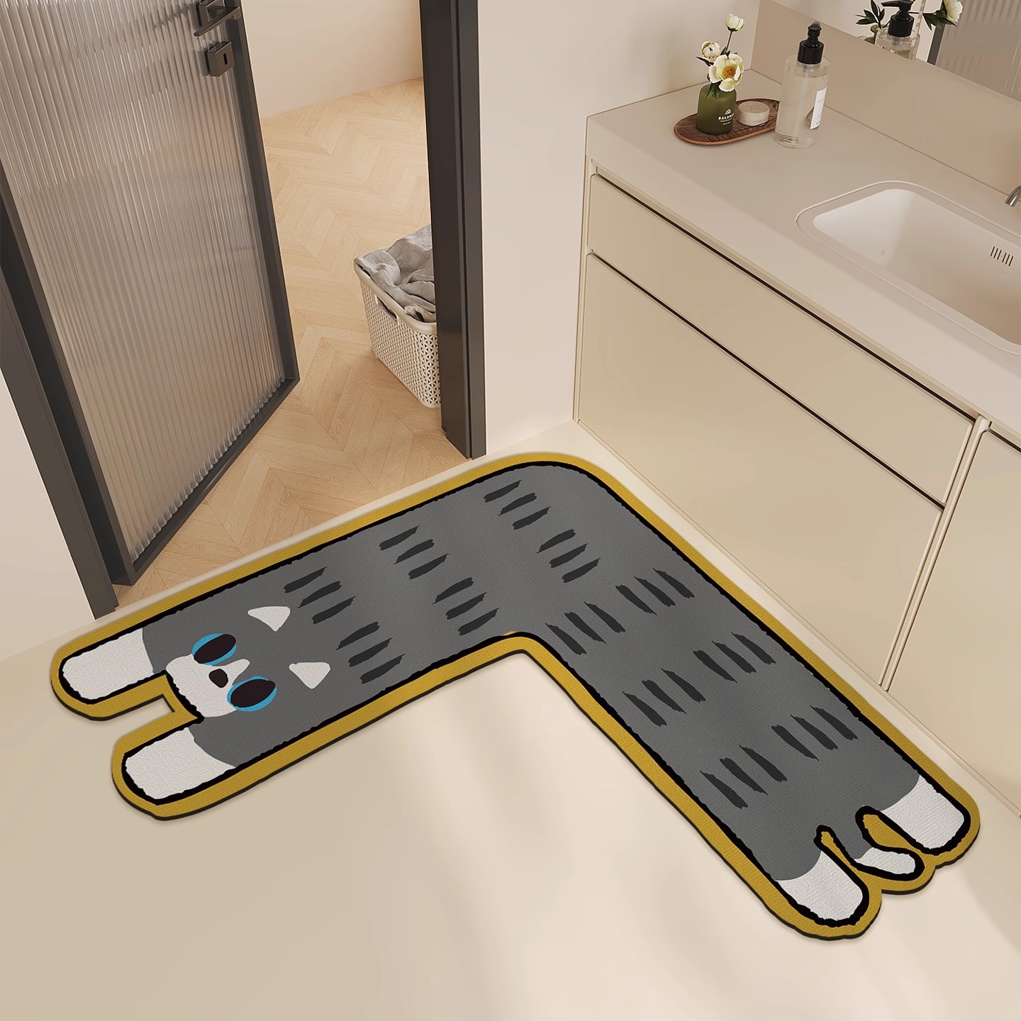 • 짧은 다리의 긴 고양이 코너 모양 [흡수성, 미끄럼 방지, 속건성]