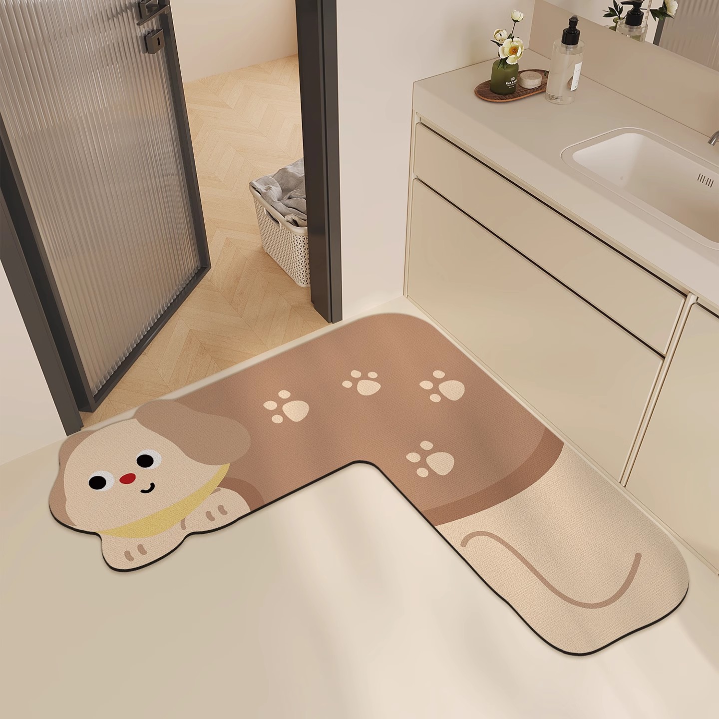 • 갈색 개 짖는 모양 [흡수성, 미끄럼 방지, 속건성]