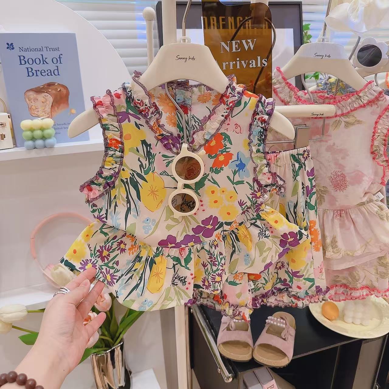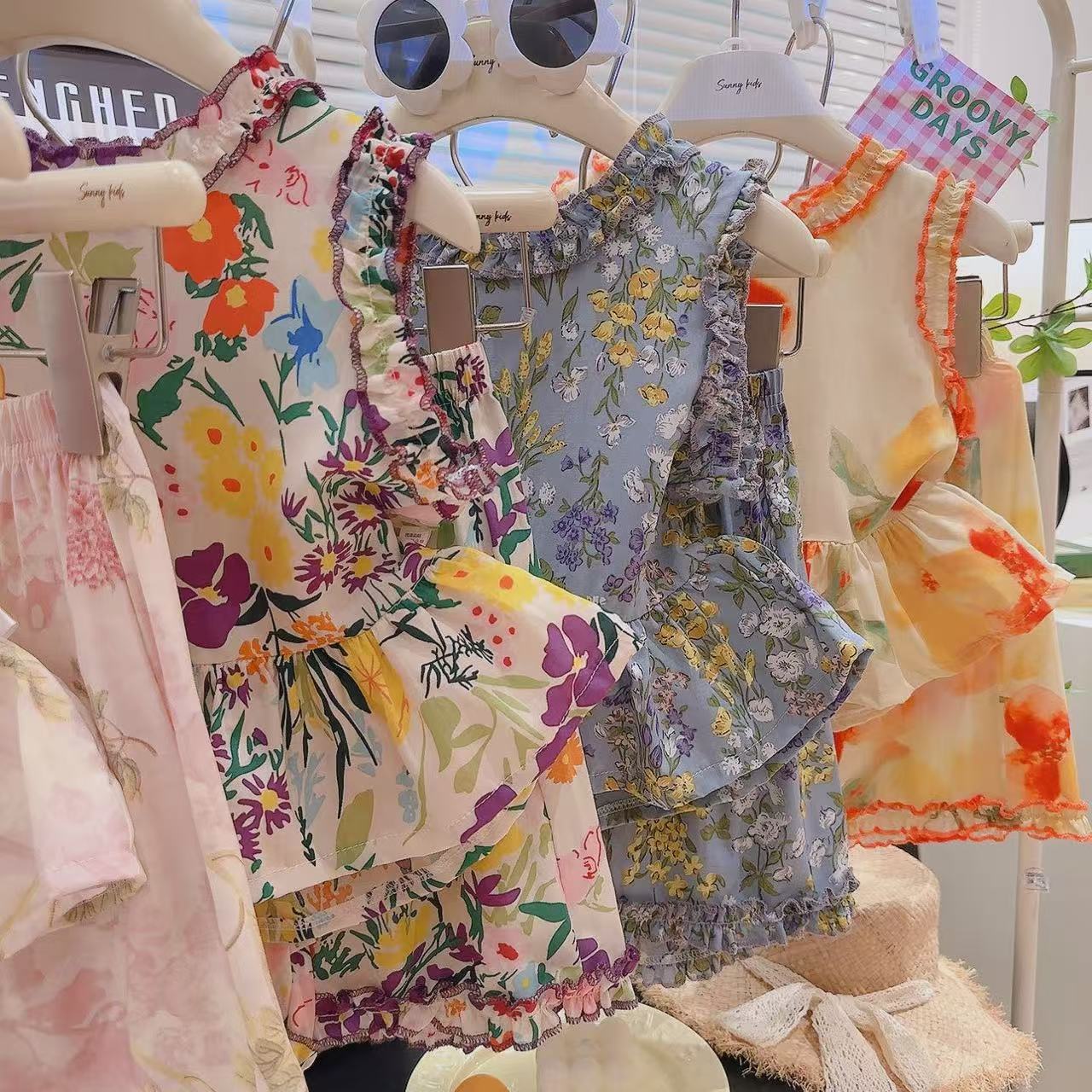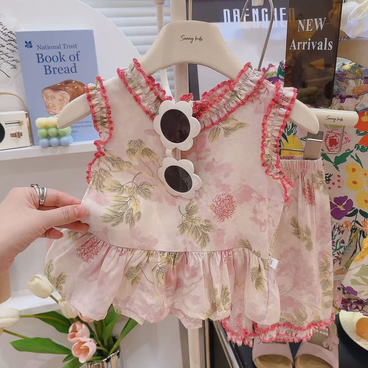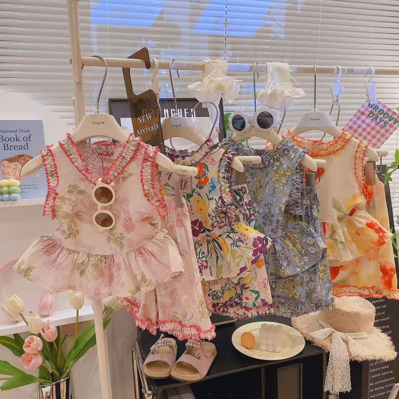 여아 여름 조끼 세트 2026 신상 여아 한국 스타일 유행 아동 인터넷 인기 나팔단 투피스 세트 트렌디