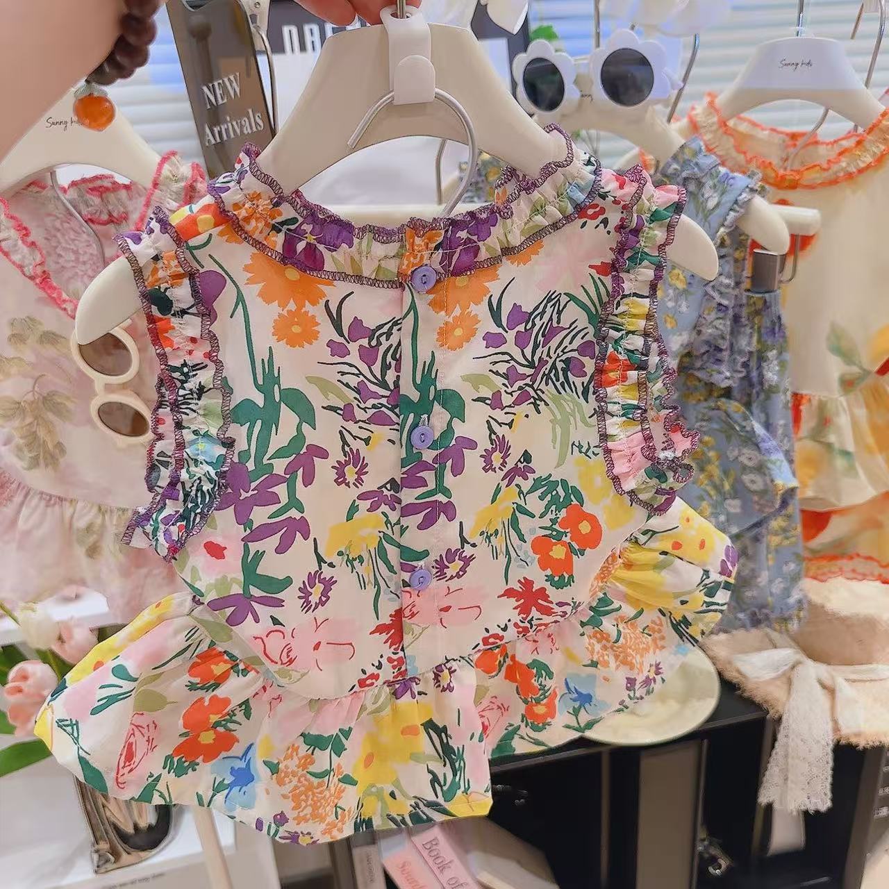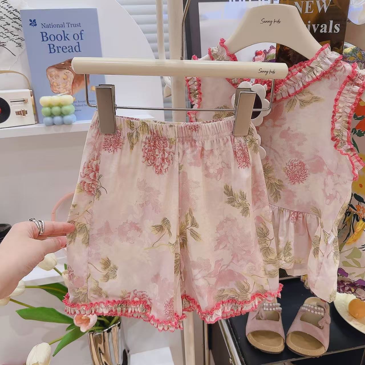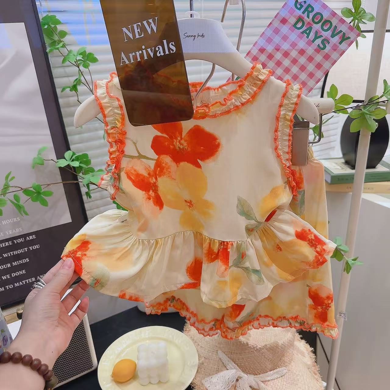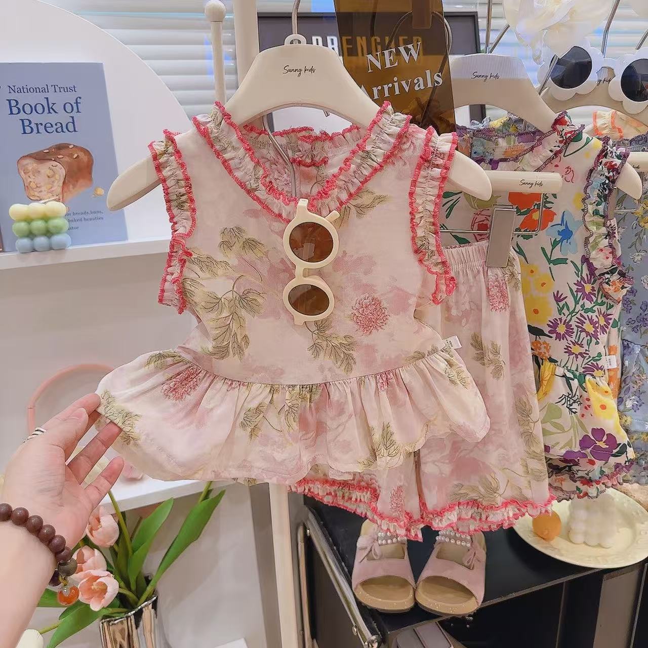 여아 여름 조끼 세트 2026 신상 여아 한국 스타일 유행 아동 인터넷 인기 나팔단 투피스 세트 트렌디
