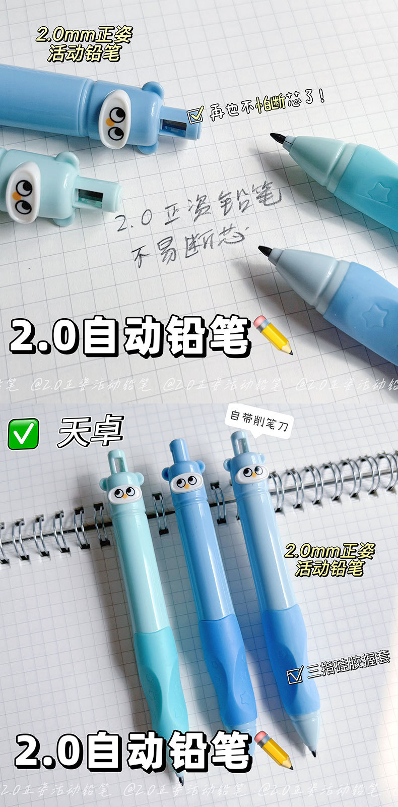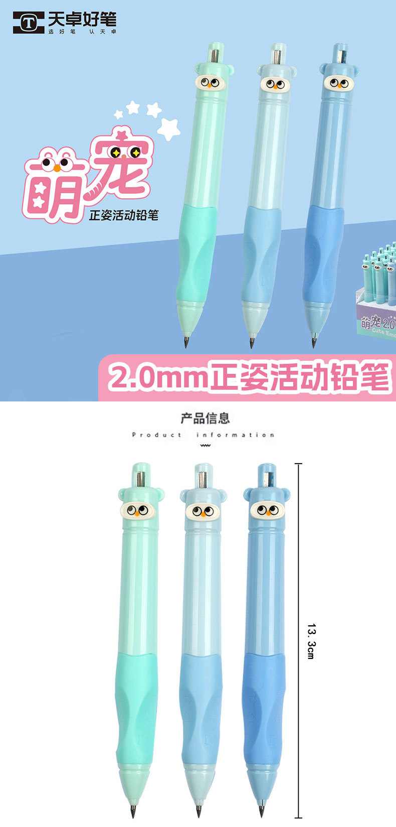 Tianzhuo 03200 뚱뚱하고 귀여운 애완 동물 초보자를위한 자동 연필 그립 자세 교정을위한 어린이 2.0 두꺼운 코어 샤프 펜슬