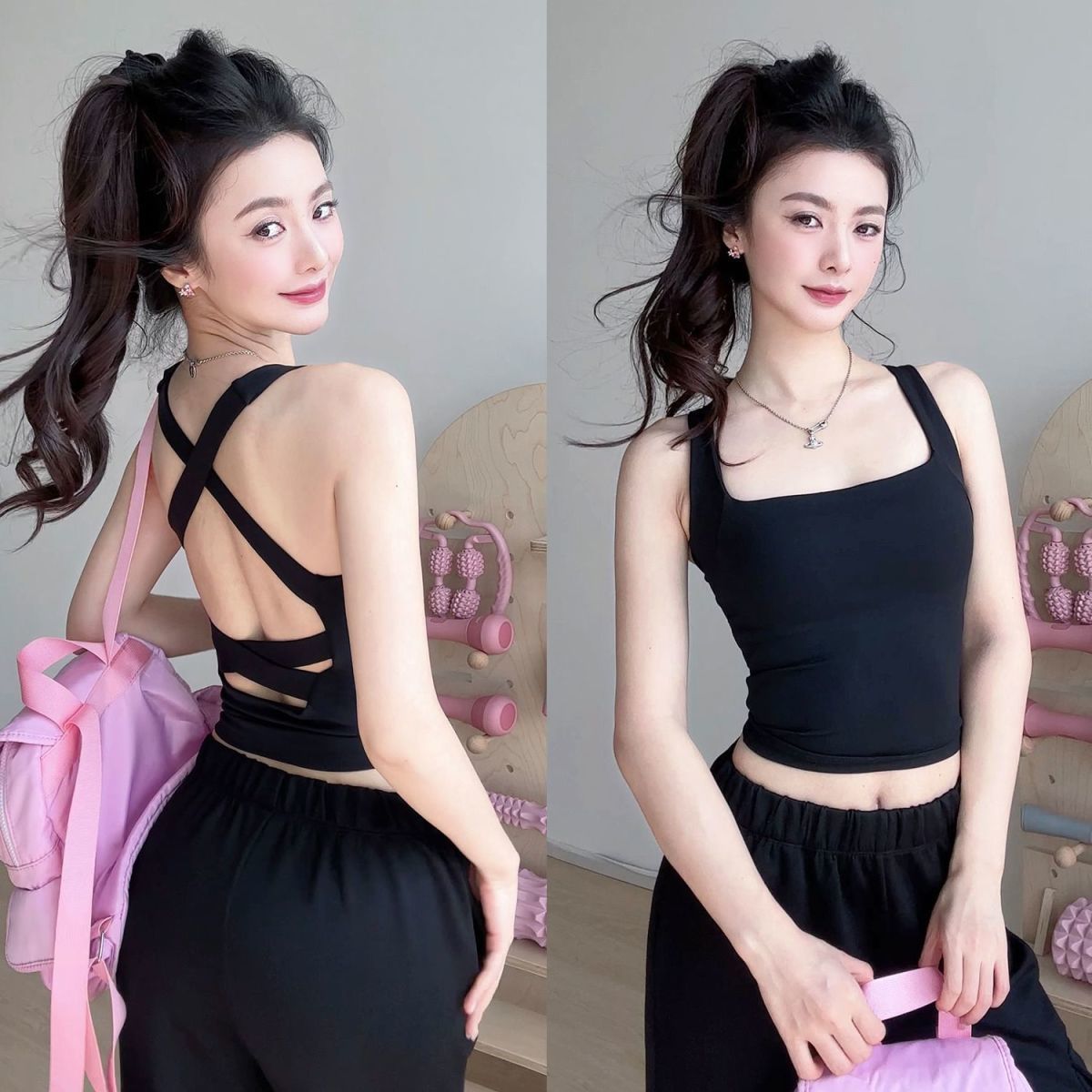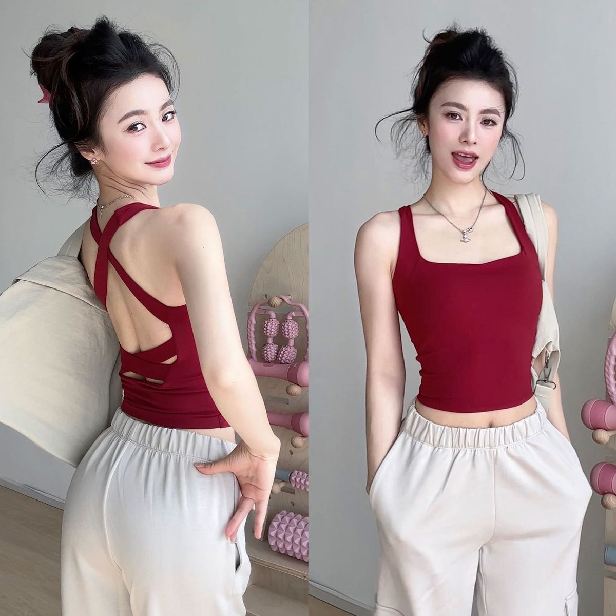 가슴 패드가 있는 크로스백 요가 조끼, 런닝 피트니스복, 여름 백리스 피트니스 탑, 스포츠 속옷, 아우터웨어스토어 가기