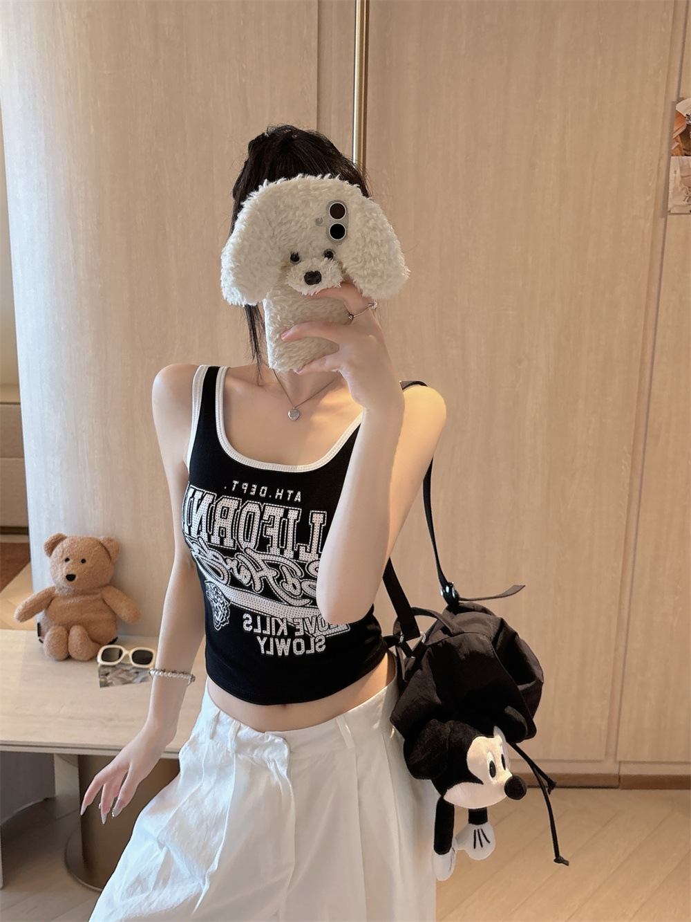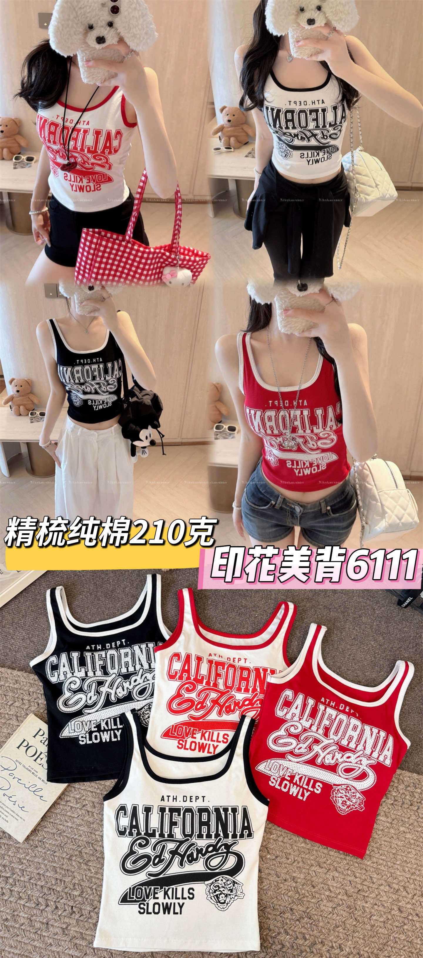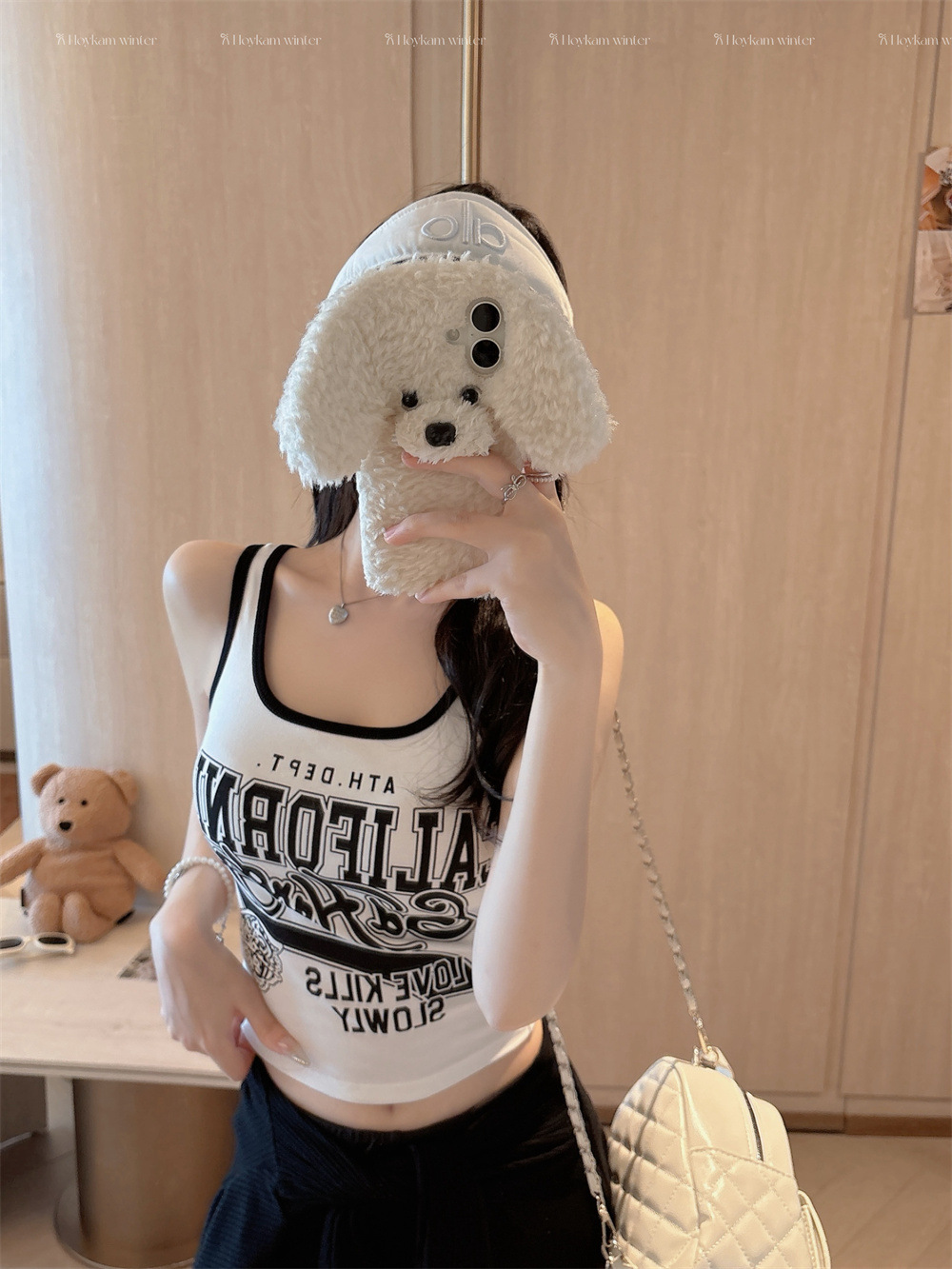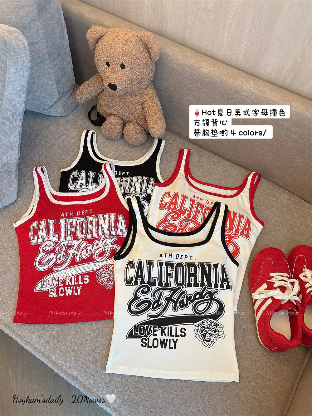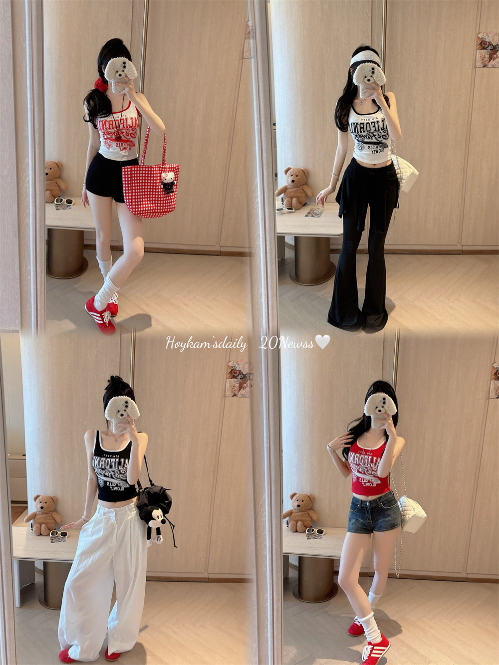 6111 # 아메리칸 레트로 레터 프린트 콘트라스트 캐미솔 여름 아우터 슬림핏 핫걸 숏탑