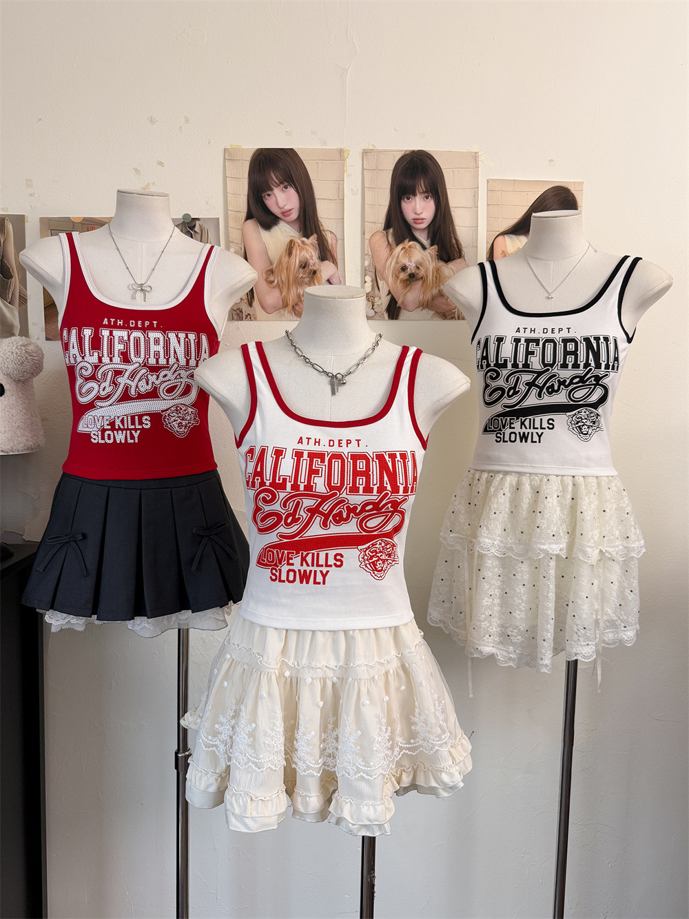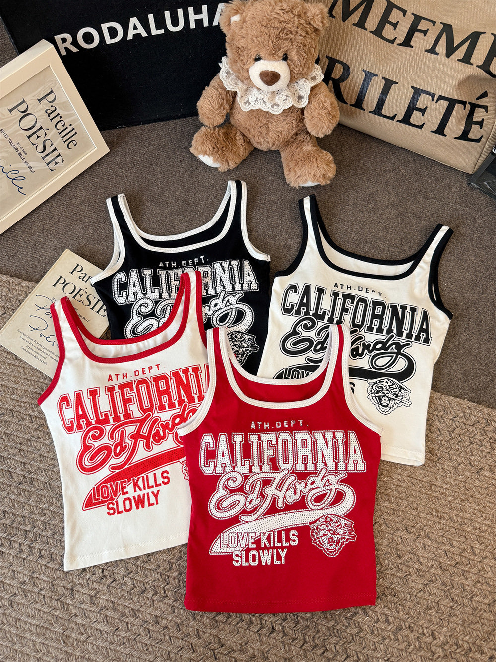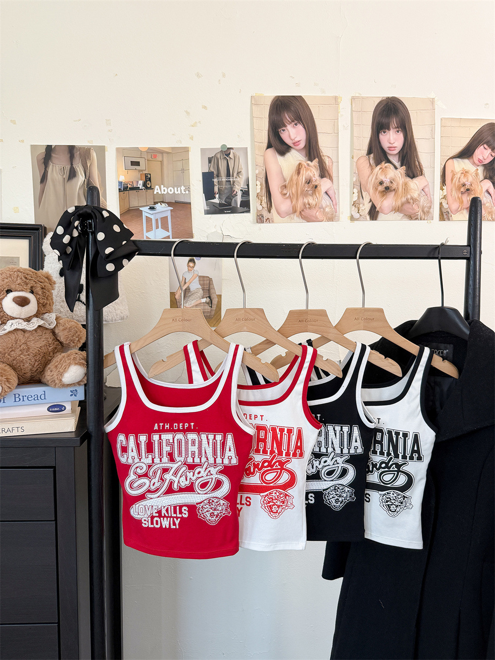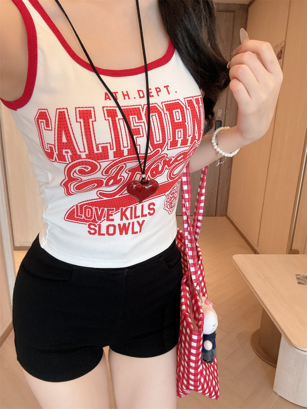6111 # 아메리칸 레트로 레터 프린트 콘트라스트 캐미솔 여름 아우터 슬림핏 핫걸 숏탑