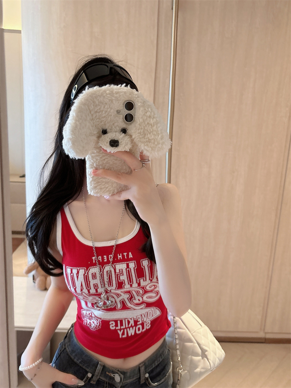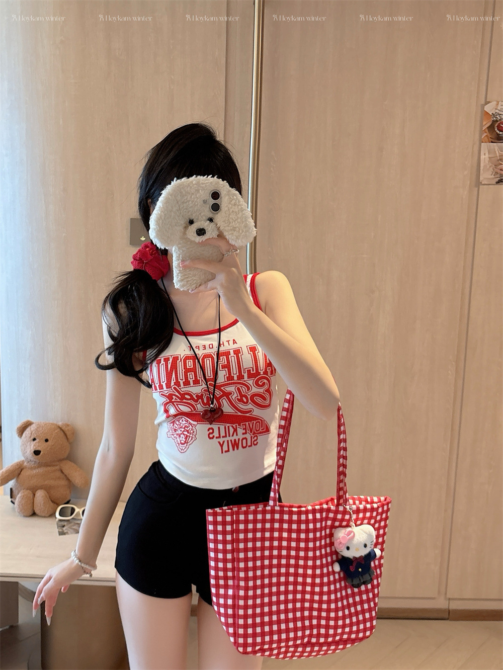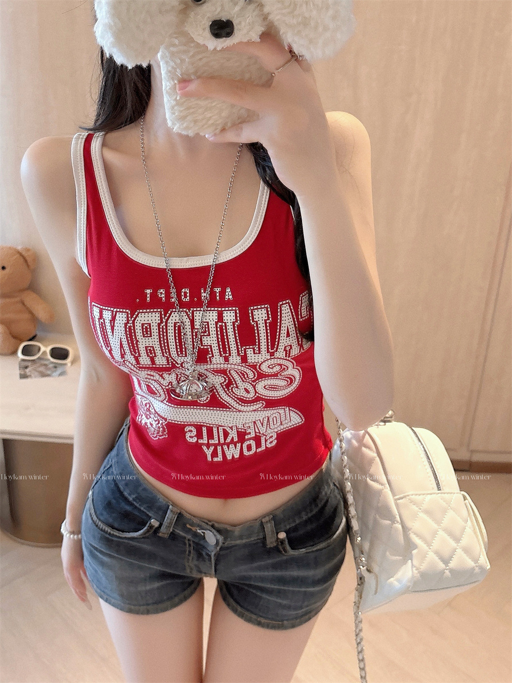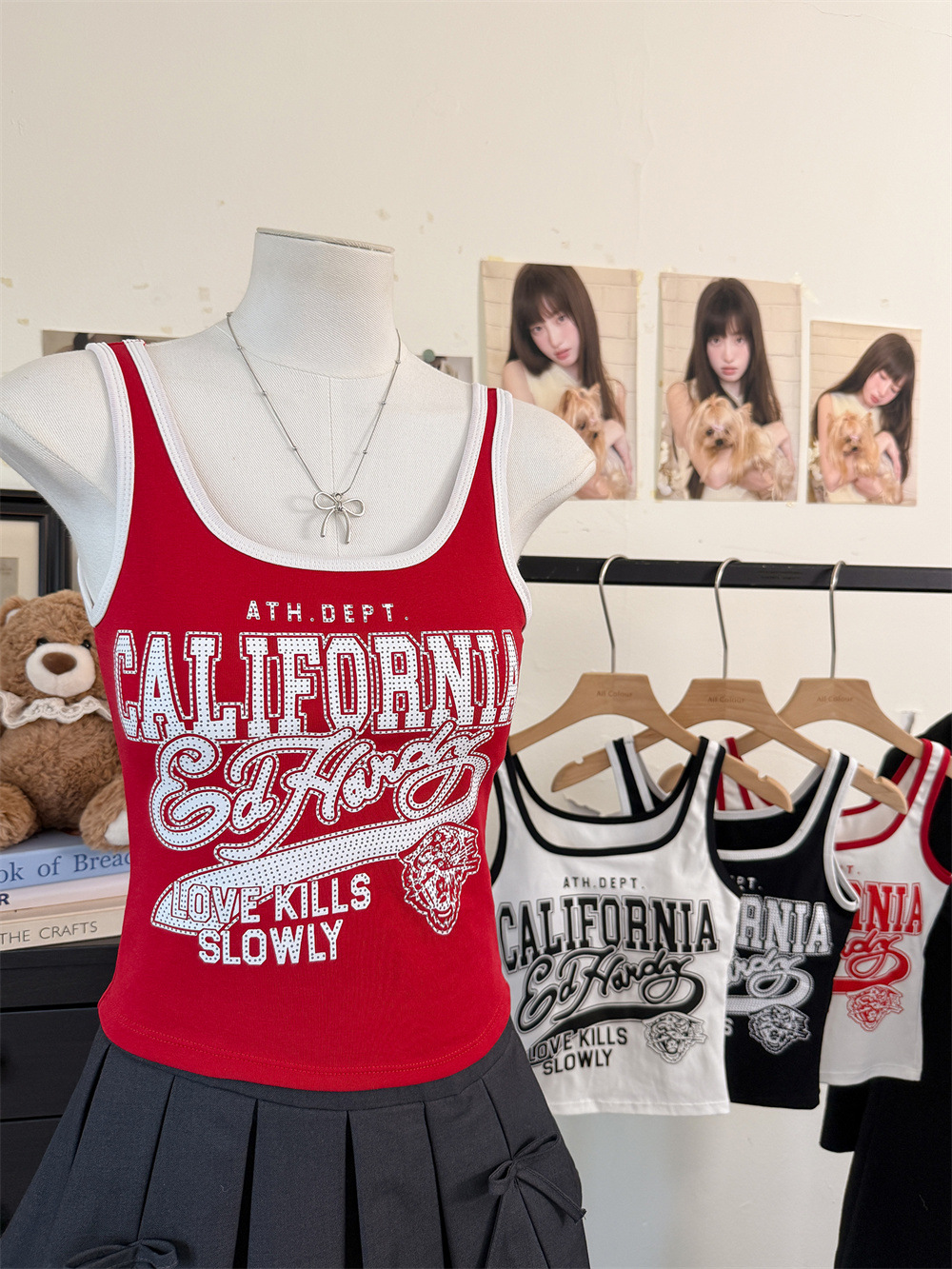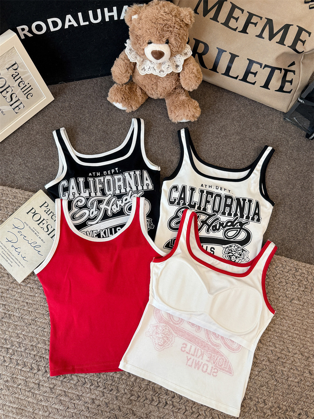 6111 # 아메리칸 레트로 레터 프린트 콘트라스트 캐미솔 여름 아우터 슬림핏 핫걸 숏탑