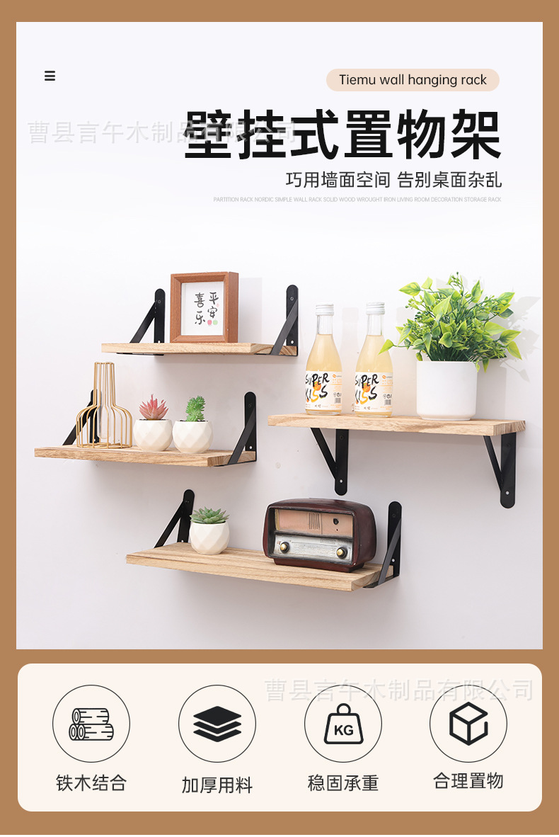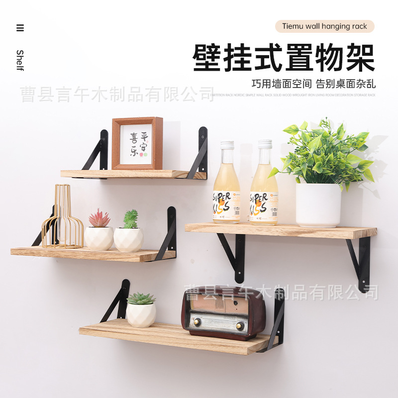 철과 나무 결합 벽걸이 형 수납 선반 나무 플로팅 파티션 복고풍 수납 선반 거실 장식 수납 선반스토어 가기
