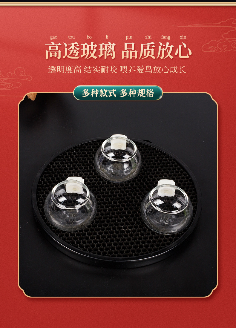 대외 무역 자수 눈 베이지 브리즈 레드 인디고 새 먹이통 식품 상자 유리 3종 세트 5종 세트 새장 액세서리