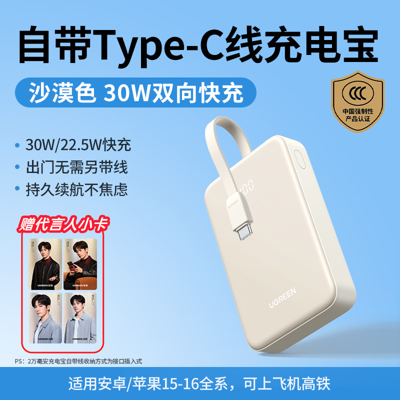 [Yi Yang Qianxi와 동일] Apple Small에 적합한 케이블이 내장된 2025년 새 모델 보조베터리 20000mAh스토어 가기
