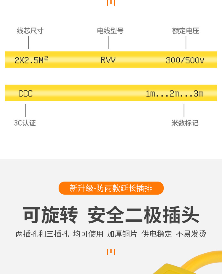 • [방수 소켓] 코드 길이 25m /4.0제곱미터❋