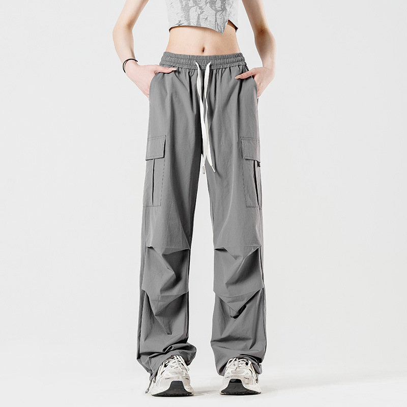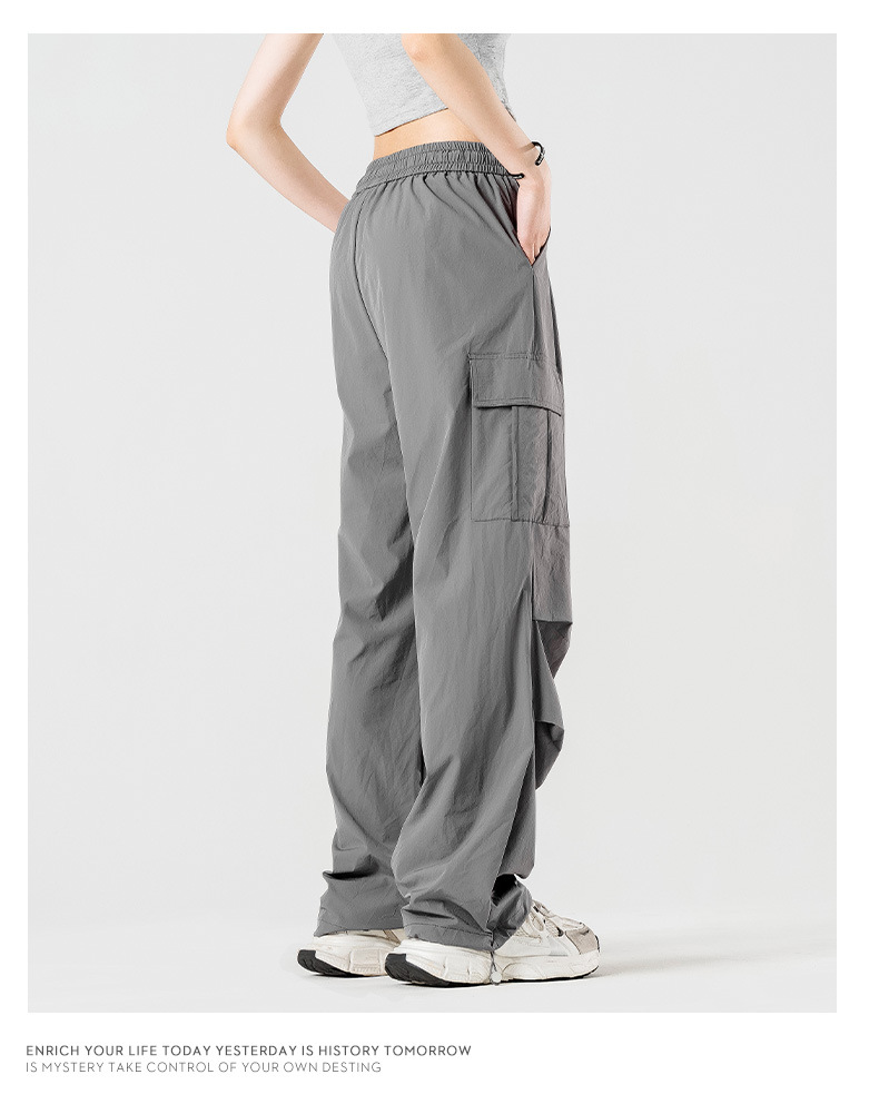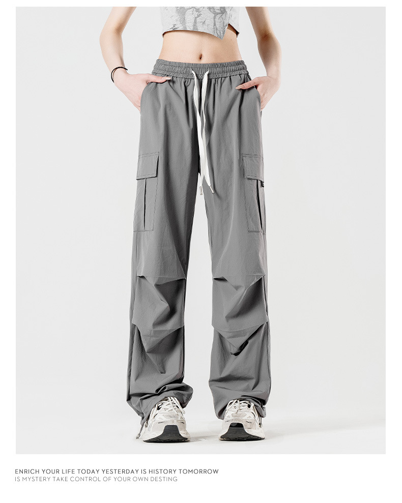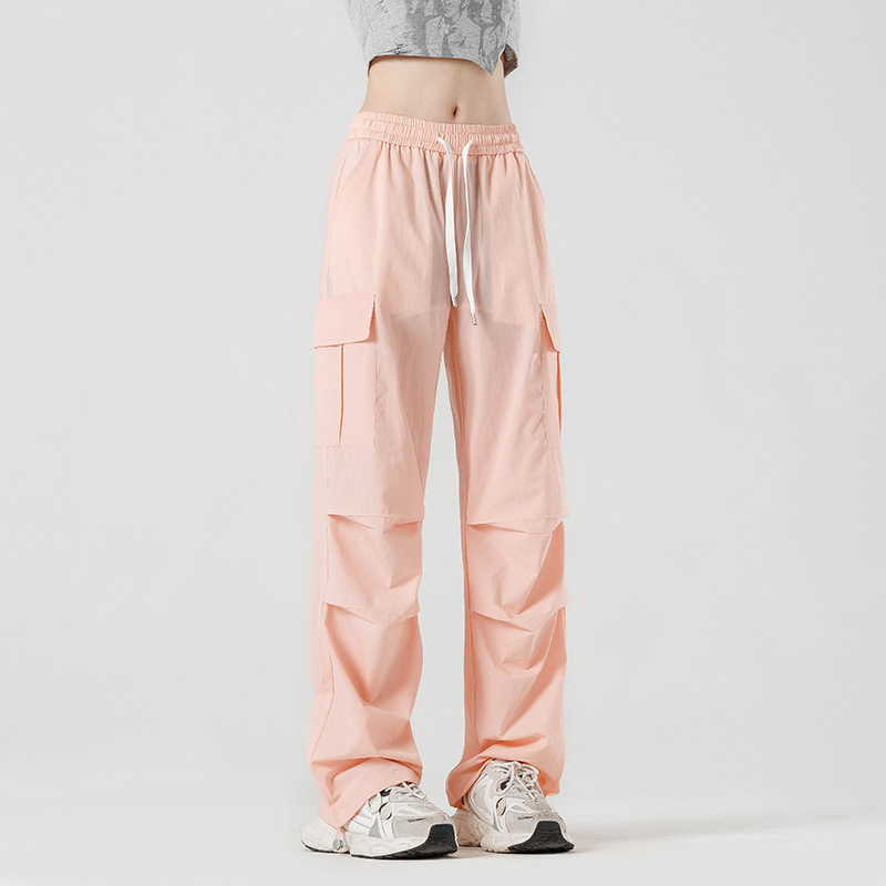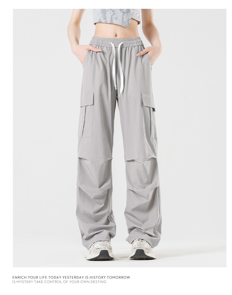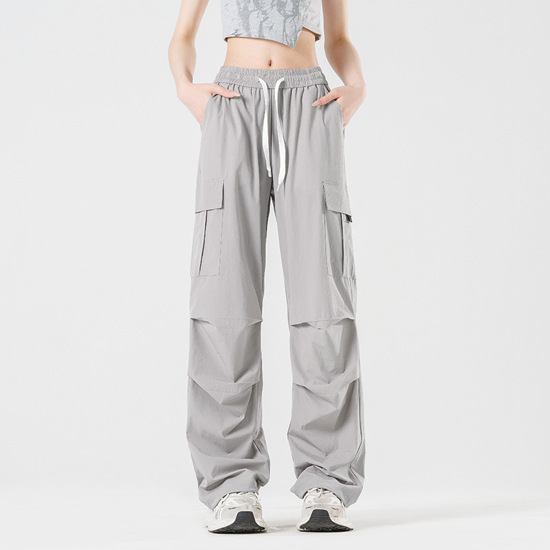 여름철 작은 체형을 위한 여성용 아이스 실크 작업복, 자외선 차단 및 방수, 남성용 낙하산 군인 와이드 팬츠, 속건성 드레이프 스포츠 하이킹 팬츠