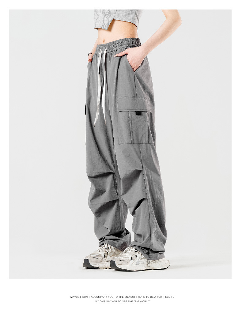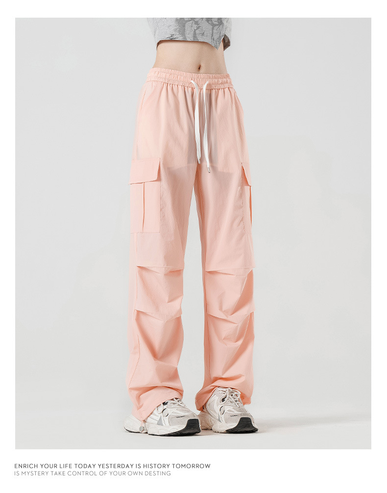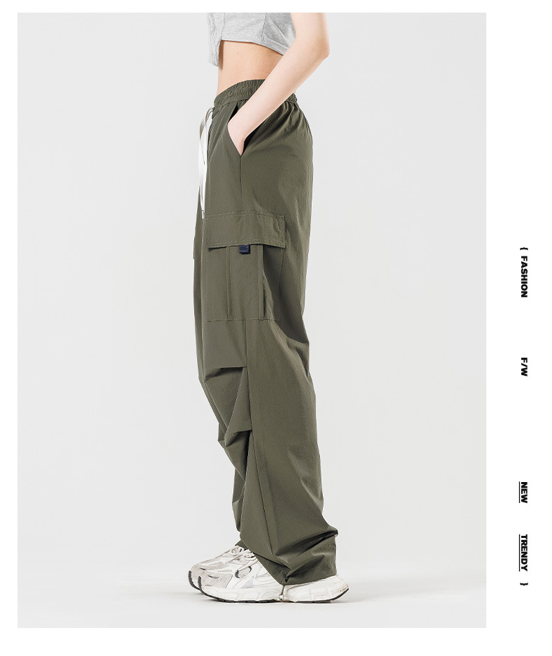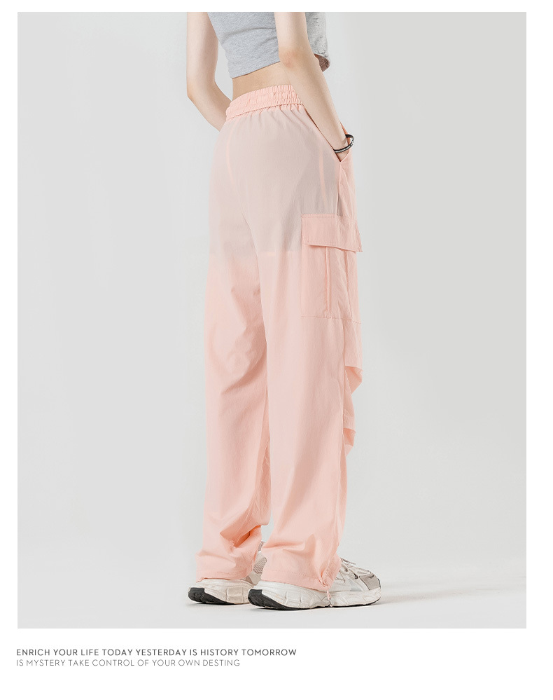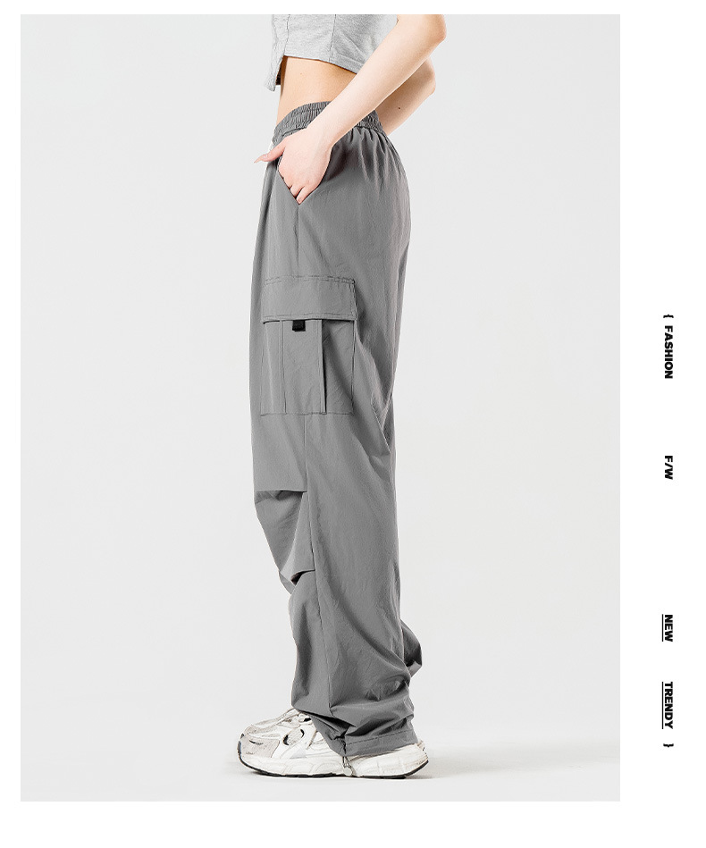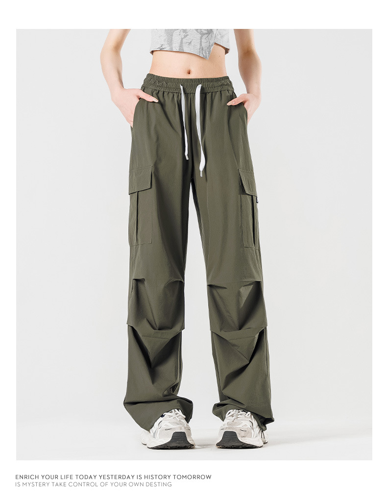 여름철 작은 체형을 위한 여성용 아이스 실크 작업복, 자외선 차단 및 방수, 남성용 낙하산 군인 와이드 팬츠, 속건성 드레이프 스포츠 하이킹 팬츠