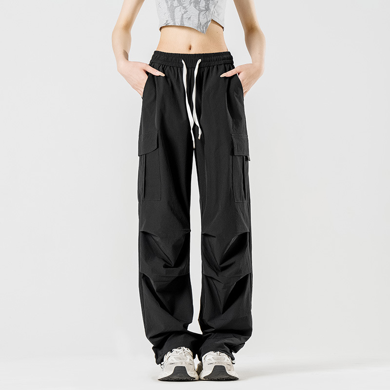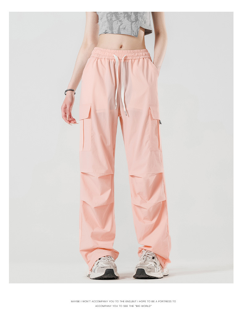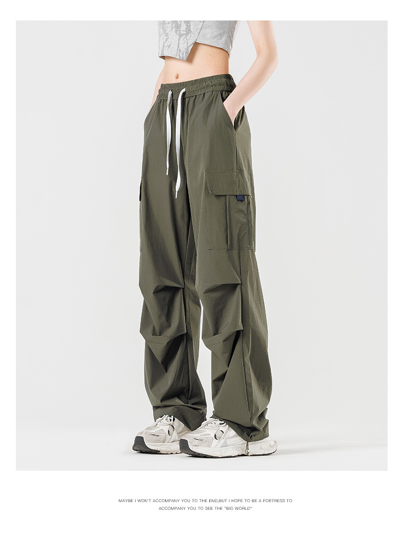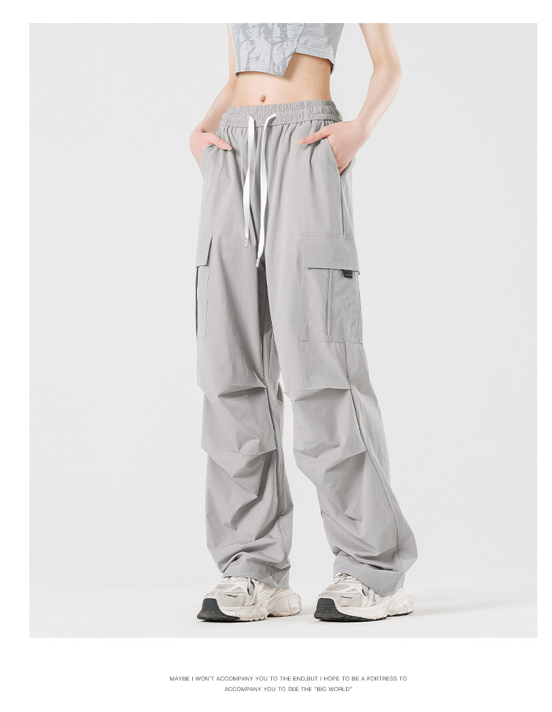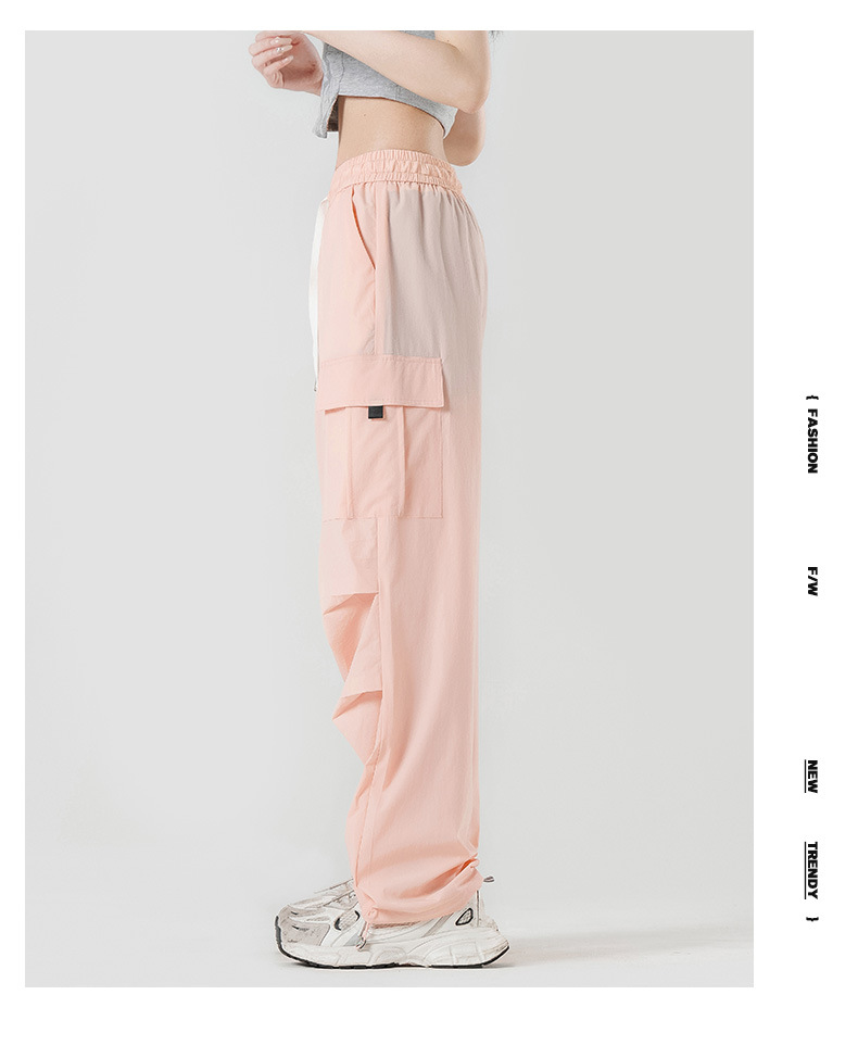여름철 작은 체형을 위한 여성용 아이스 실크 작업복, 자외선 차단 및 방수, 남성용 낙하산 군인 와이드 팬츠, 속건성 드레이프 스포츠 하이킹 팬츠