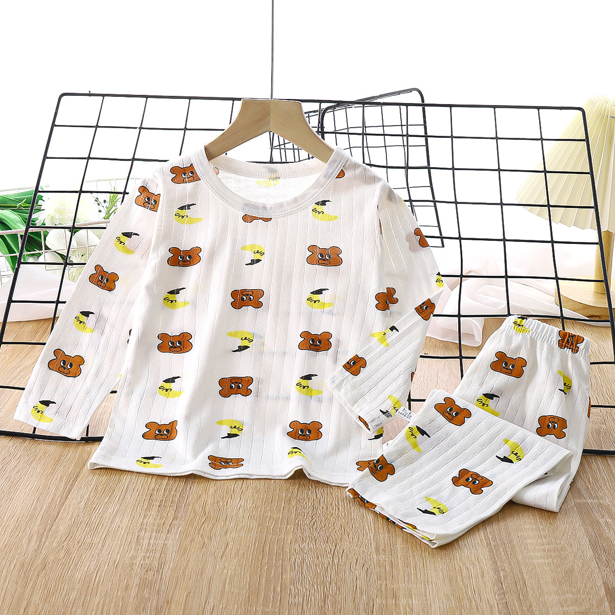 어린이 잠옷 순수 코튼 소년과 소녀 긴팔 가정 의류 세트 소년 만화 여름 얇은 아기 에어컨 옷스토어 가기