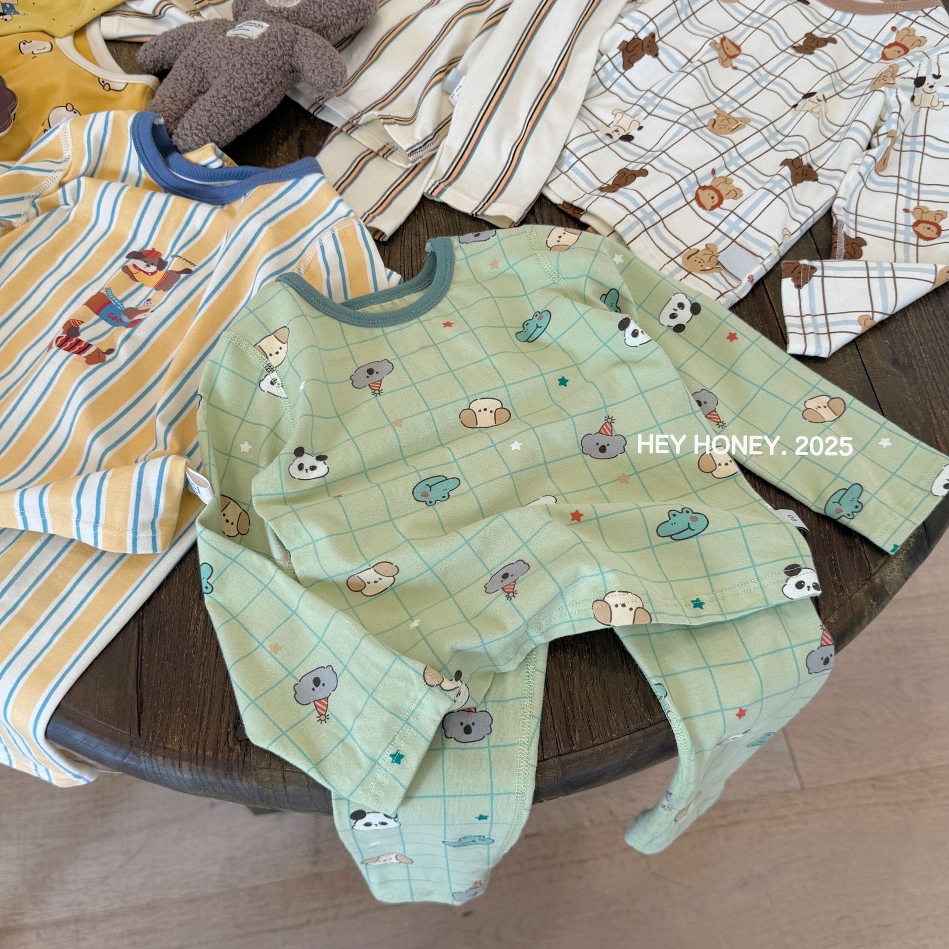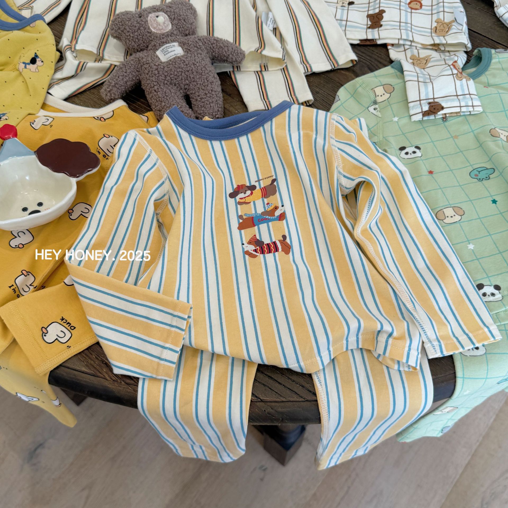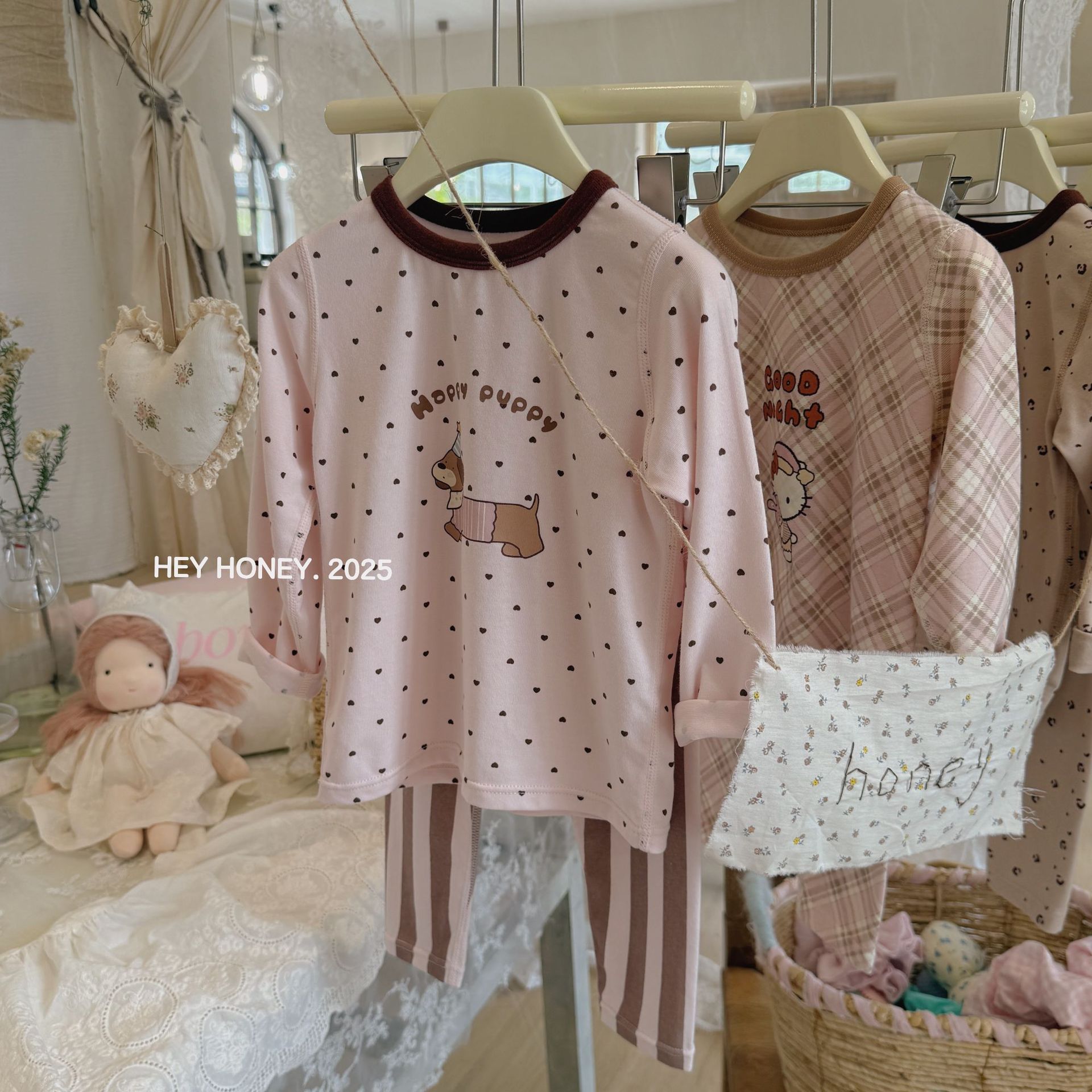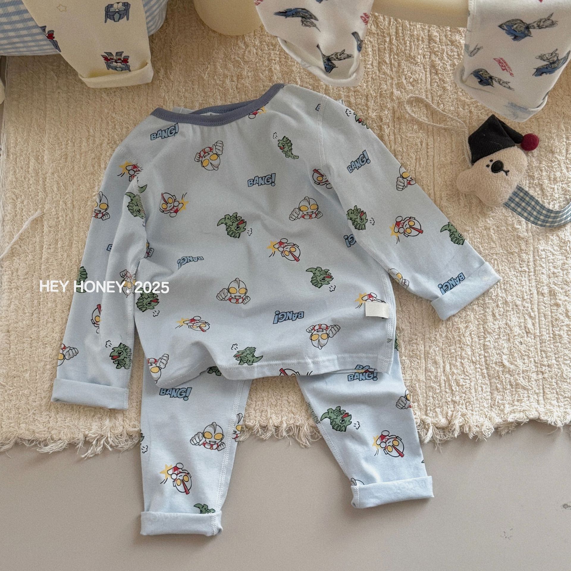 소형 및 대형 롤 헤이 허니 소년 소녀 200 클레카 가을 옷과 긴 바지 속옷 세트 순면 잠옷 2 피스 세트스토어 가기