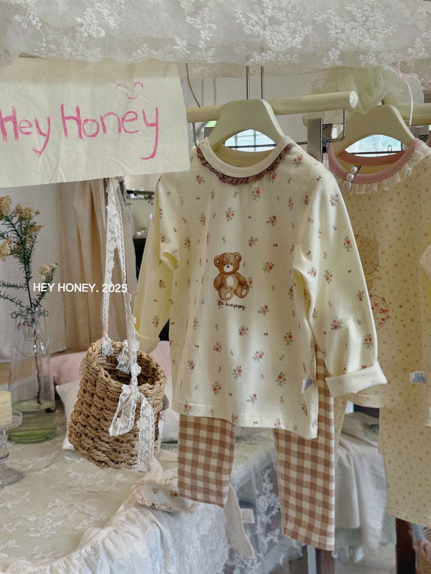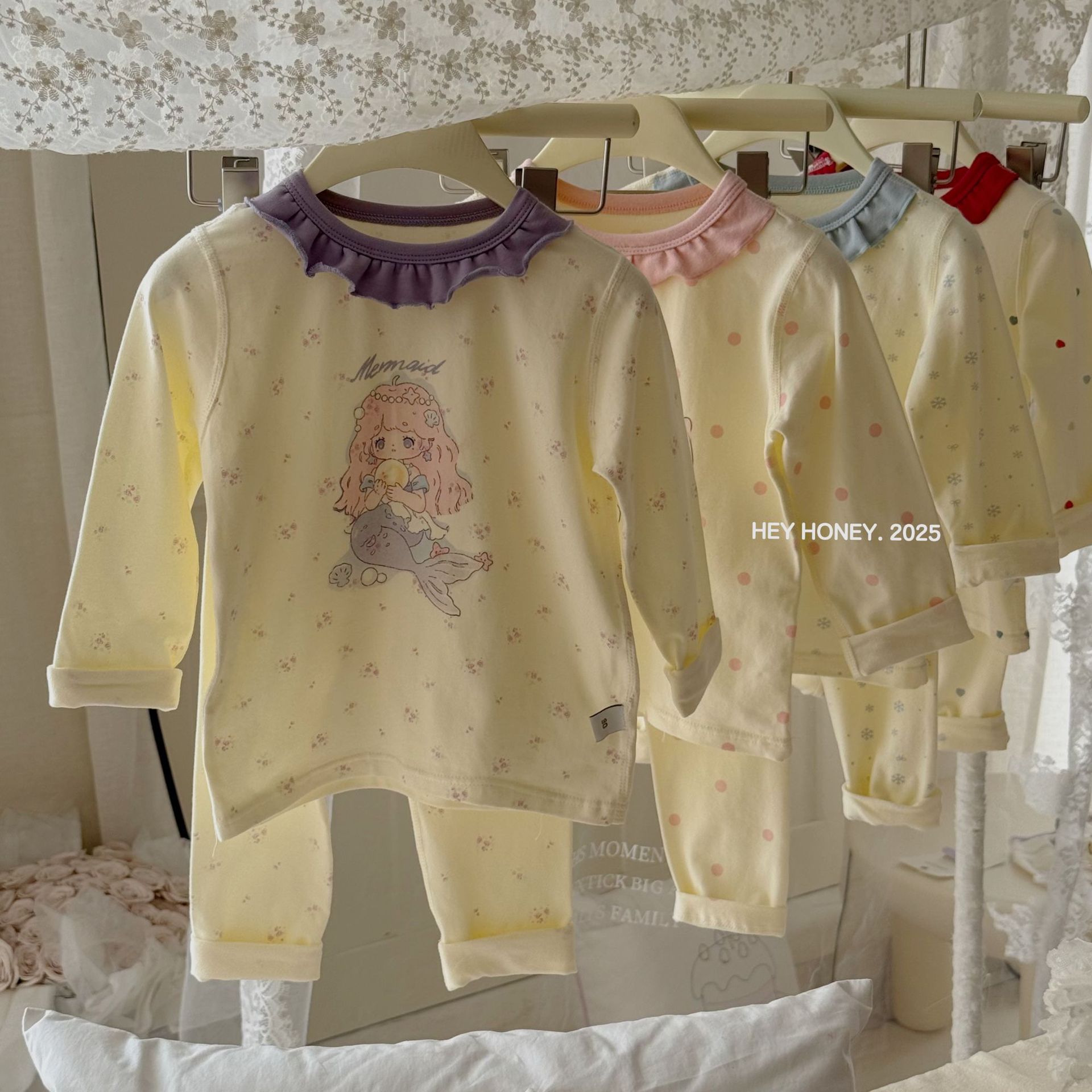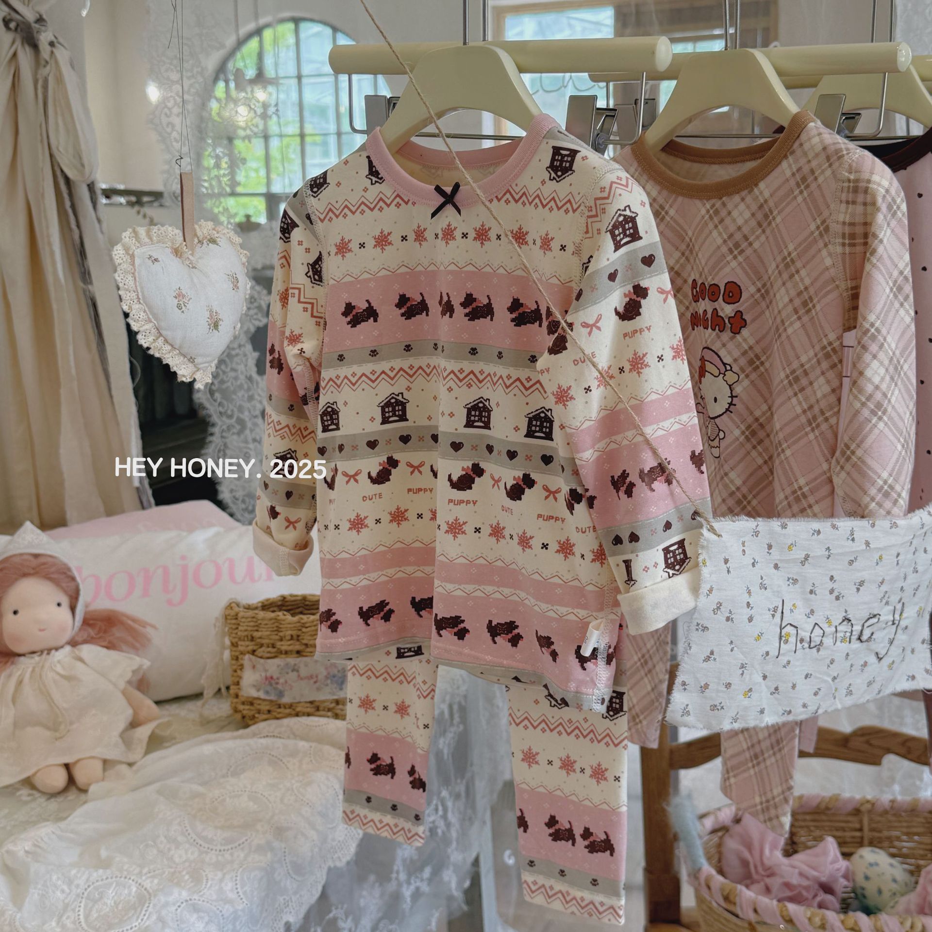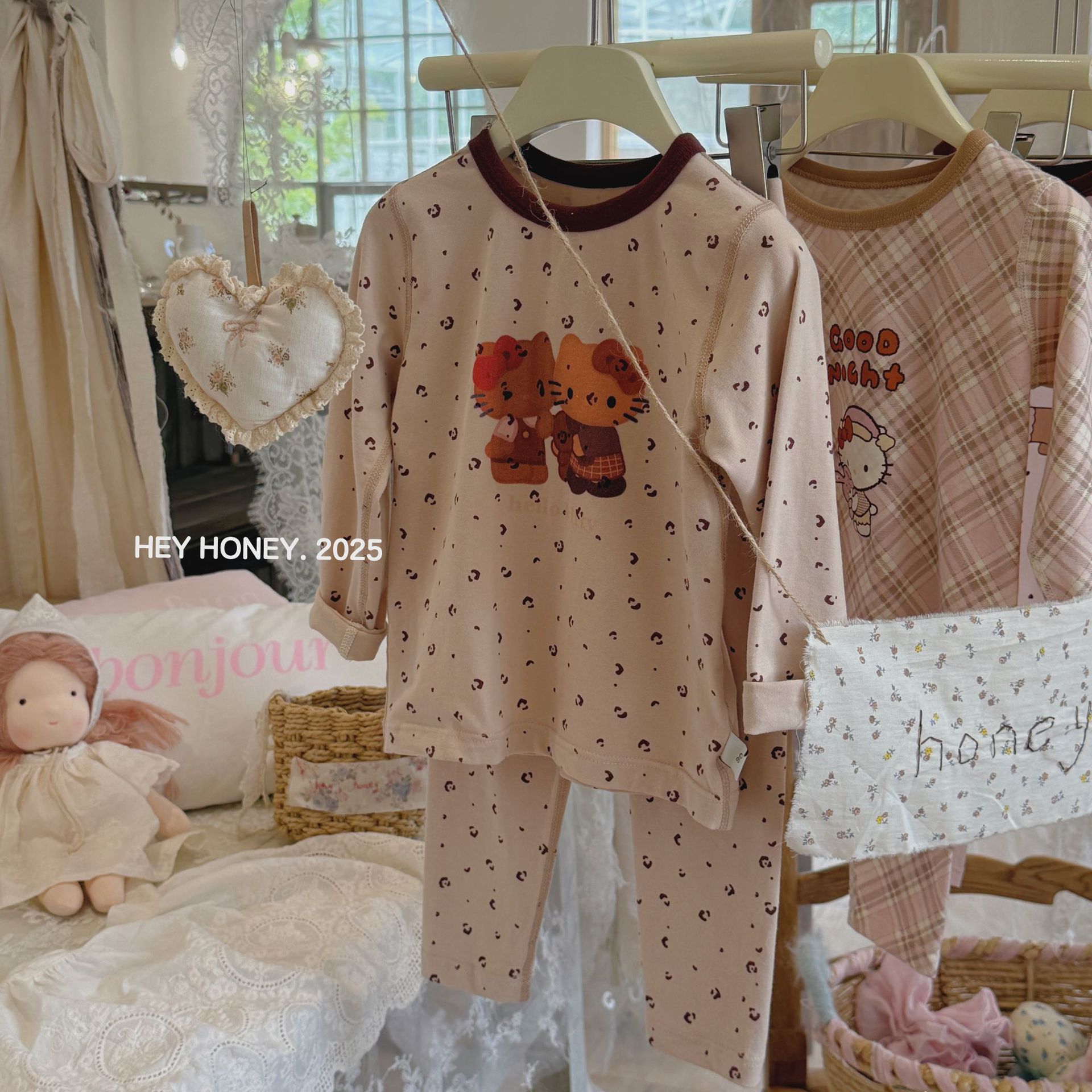 소형 및 대형 롤 헤이 허니 소년 소녀 200 클레카 가을 옷과 긴 바지 속옷 세트 순면 잠옷 2 피스 세트스토어 가기