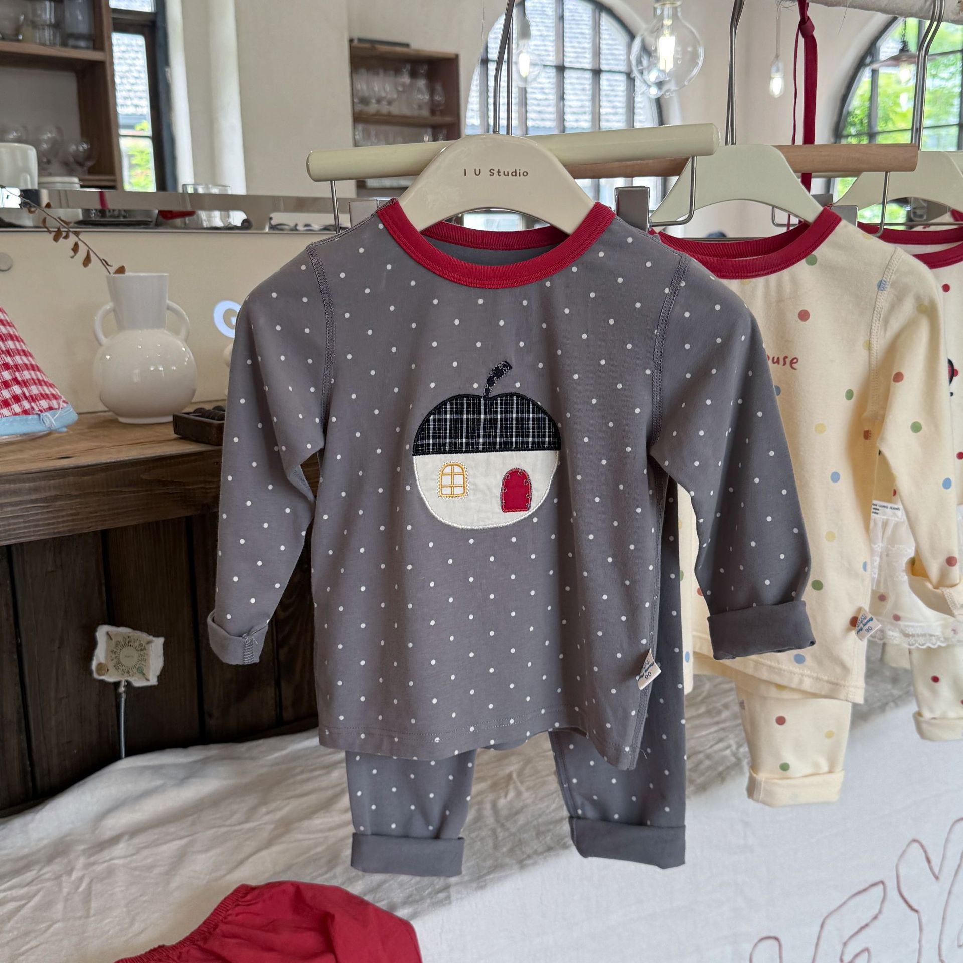 • 그레이 아플리케 자수 사과