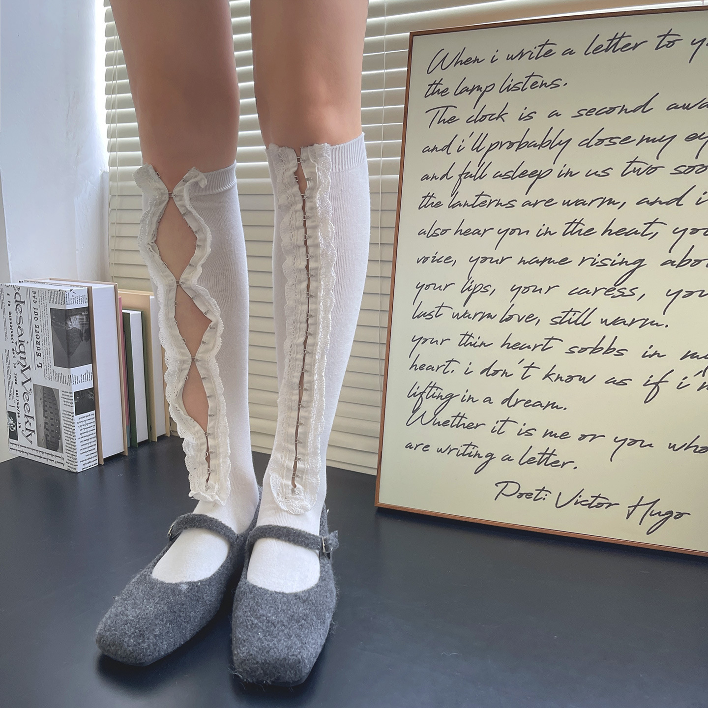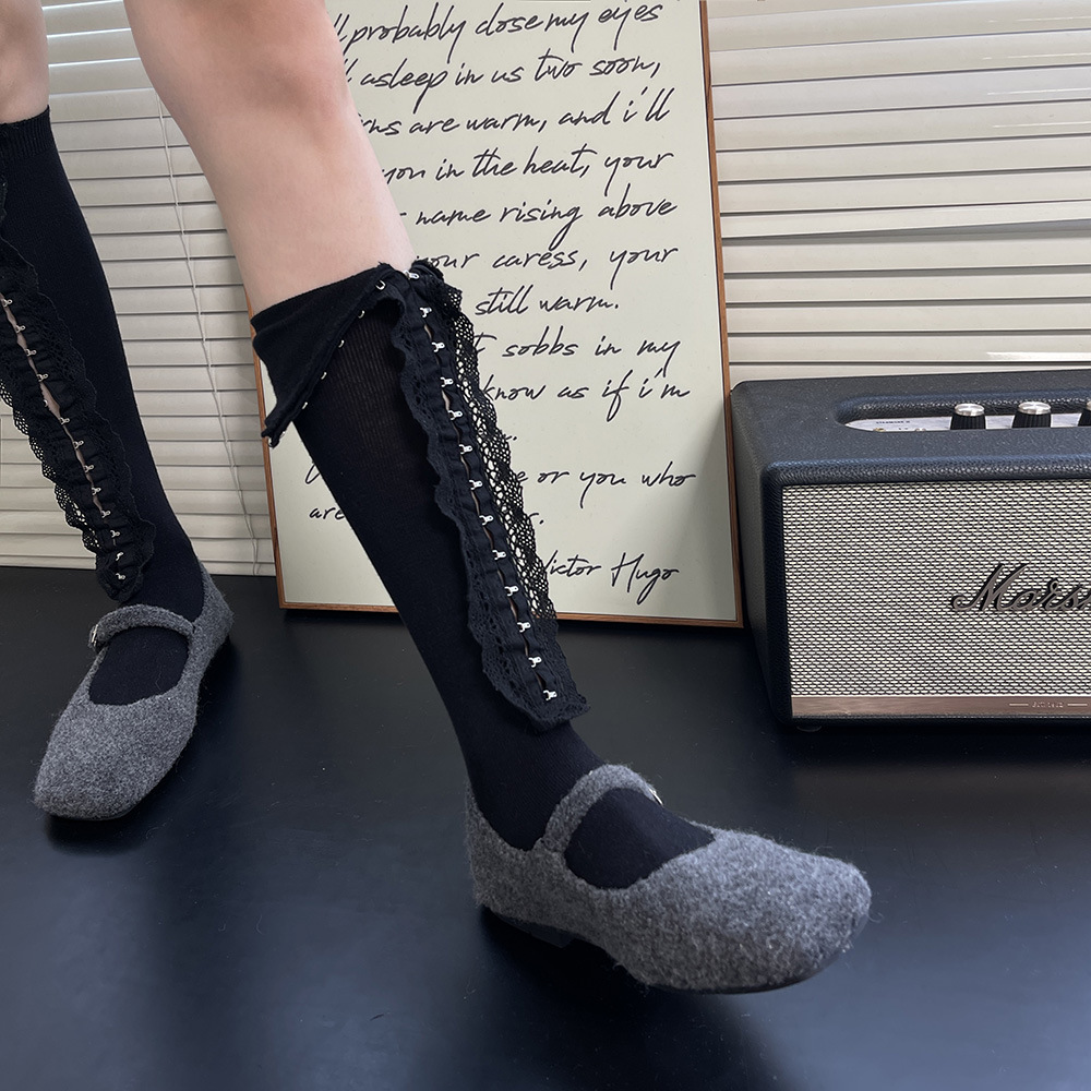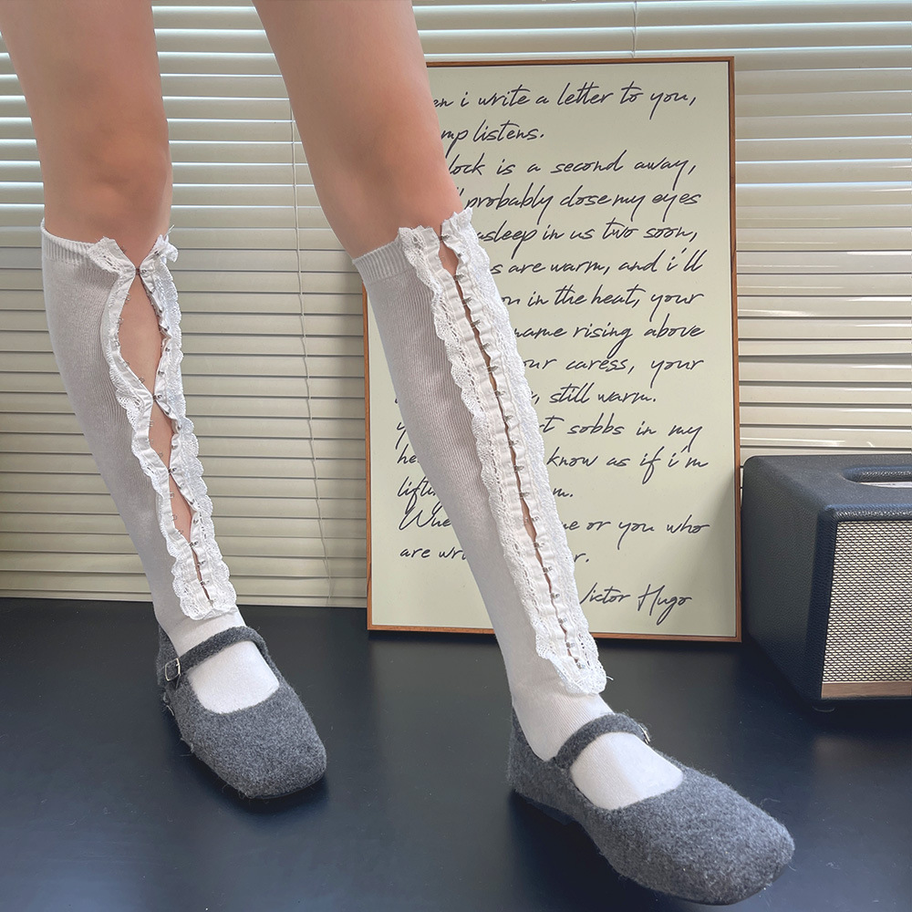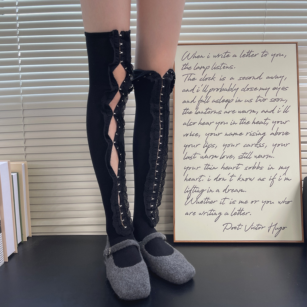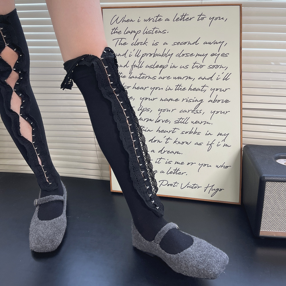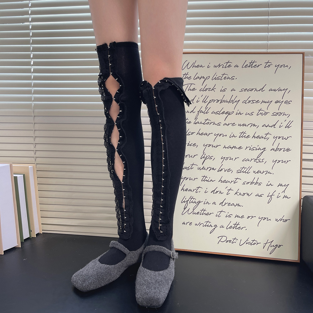 Subculture y2k 핫 소녀 속옷 버클 맞춤형 중공 레이스 소녀 유행 중간 튜브 무릎 위 허벅지 양말 여성용