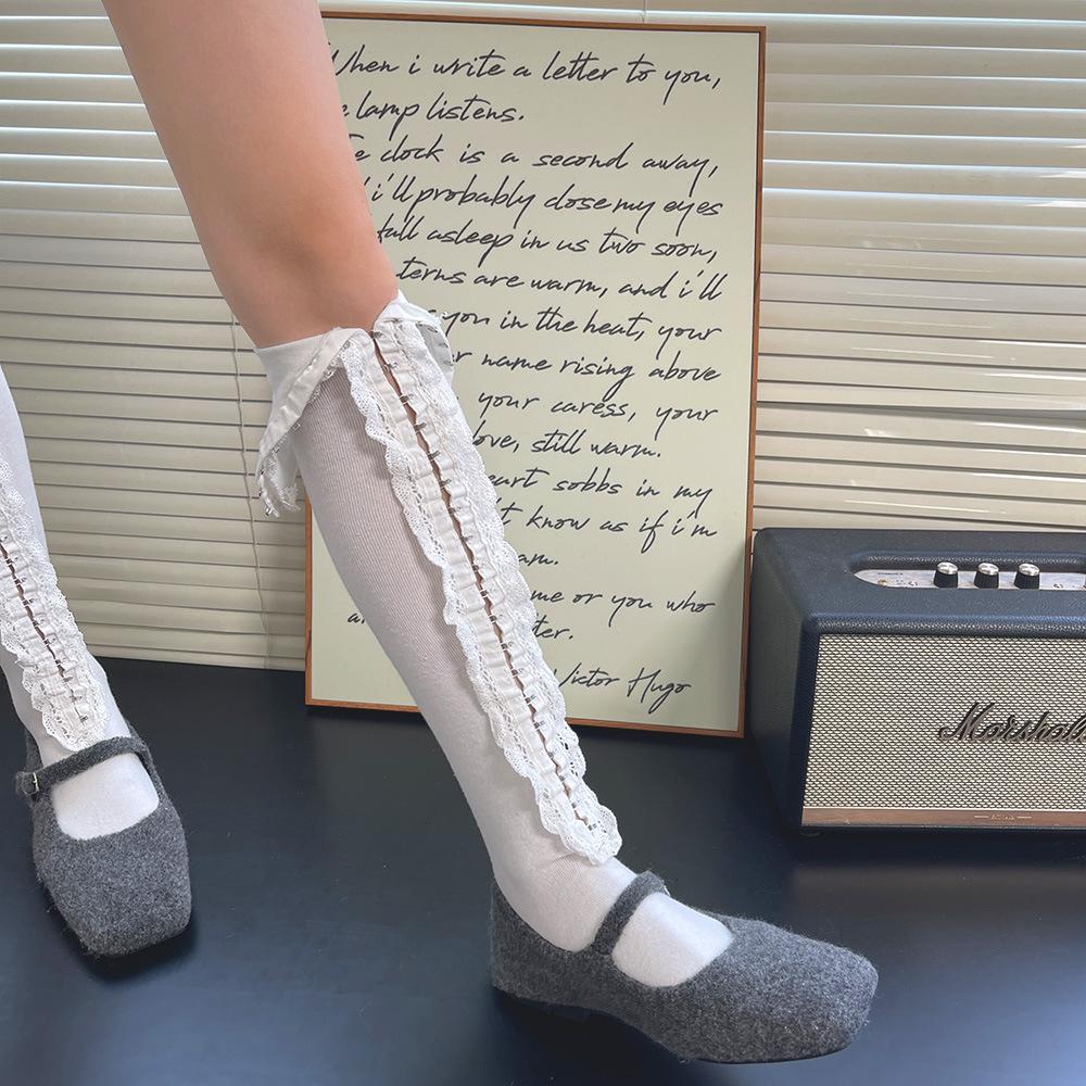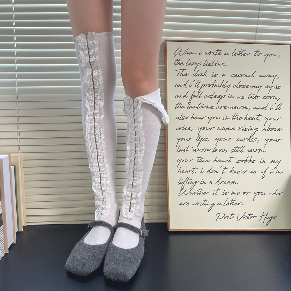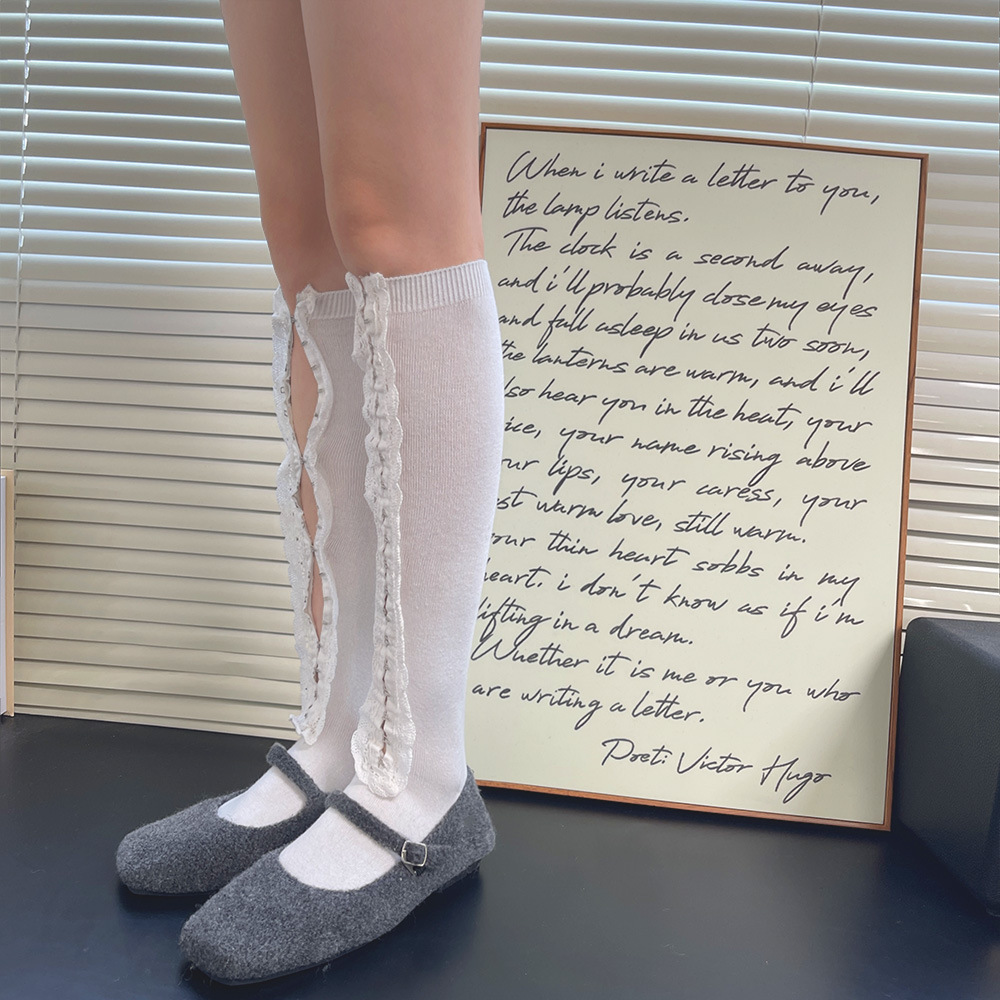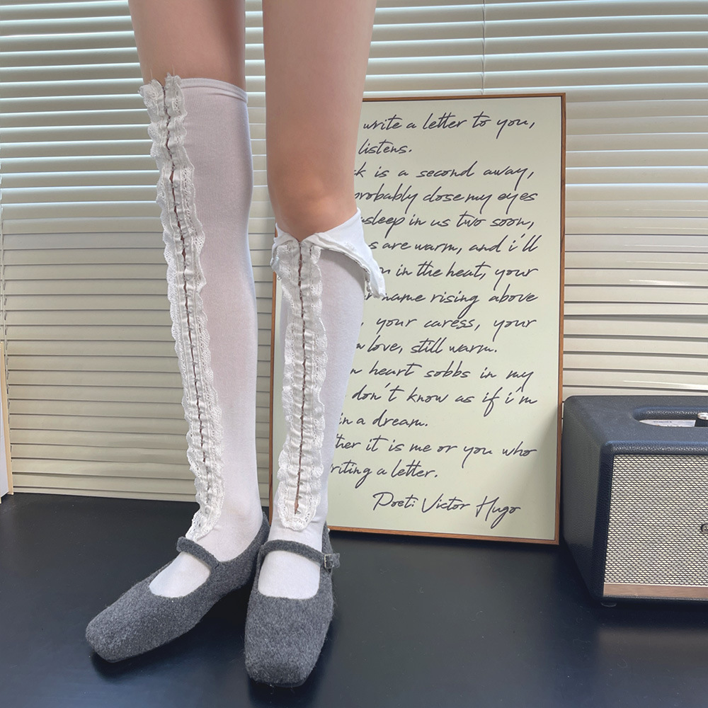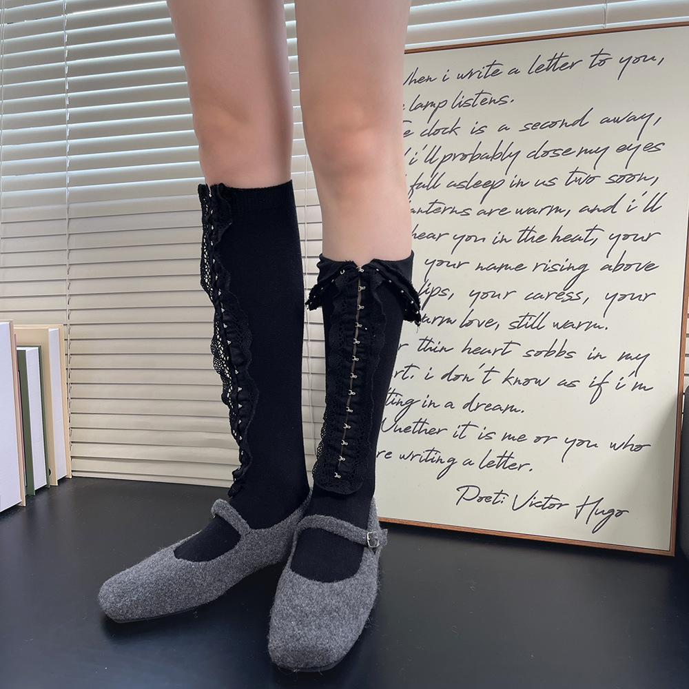 Subculture y2k 핫 소녀 속옷 버클 맞춤형 중공 레이스 소녀 유행 중간 튜브 무릎 위 허벅지 양말 여성용스토어 가기