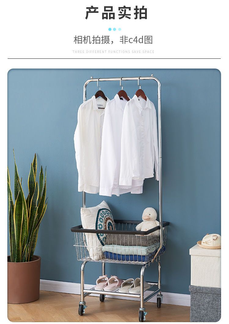 간단한 코트 랙, 바닥 스탠딩 침실 보관 랙, 가정용 보관 바구니, 의류 매장 이동식 옷 랙 트롤리스토어 가기
