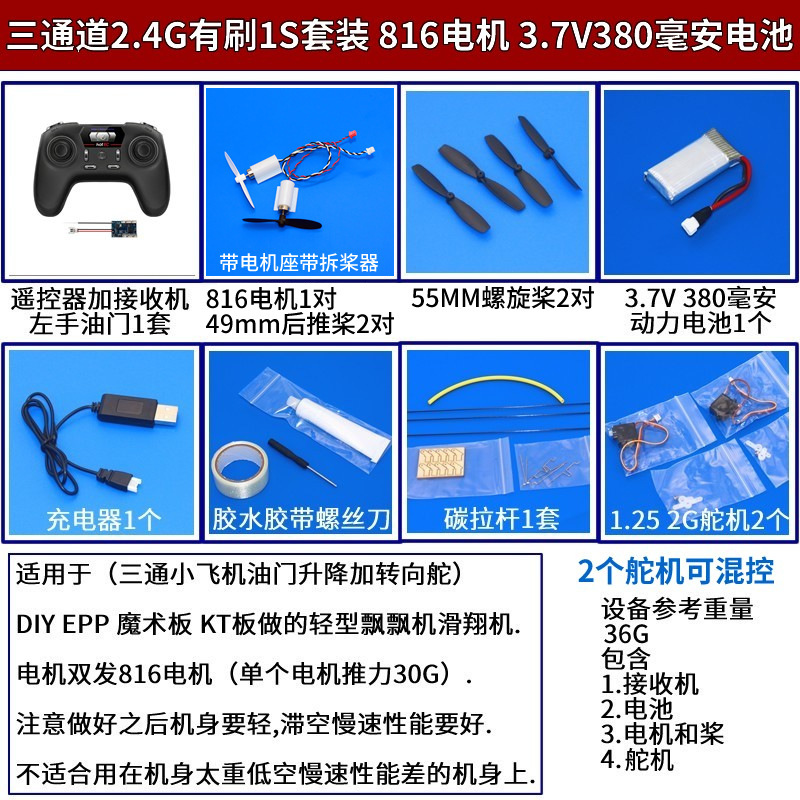 모델 항공기 원격 제어 브러시 수신기 1S 3채널 혼합 제어 3.7V 소형 플라이어 종이 비행기 글라이더스토어 가기