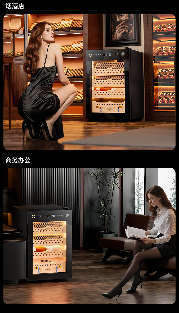 Jialong 지문 잠금 시가 캐비닛 항온 및 습도 시나몬 목재 선반 물 이온 제거 암모니아 및 알코올 WIFI 시가 캐비닛스토어 가기