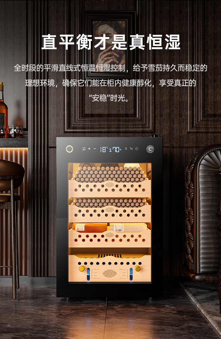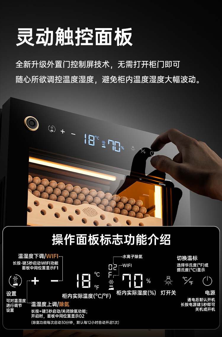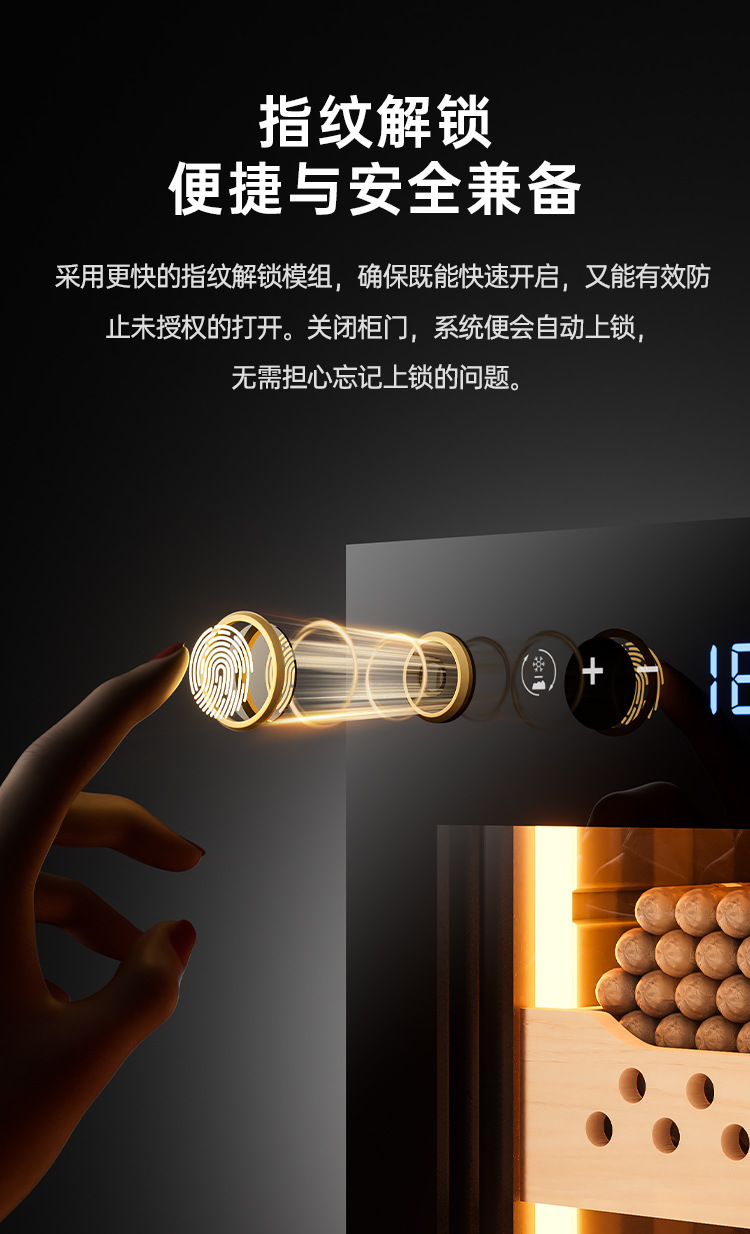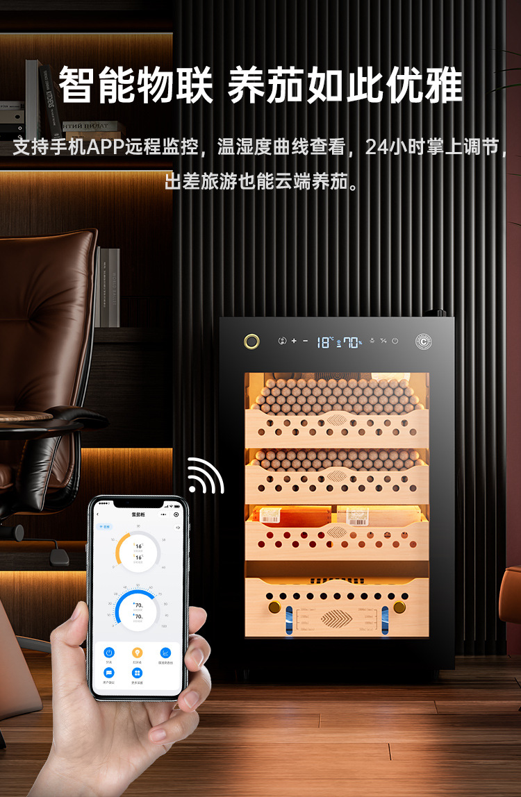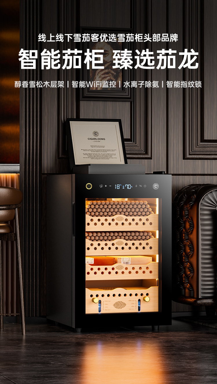 Jialong 지문 잠금 시가 캐비닛 항온 및 습도 시나몬 목재 선반 물 이온 제거 암모니아 및 알코올 WIFI 시가 캐비닛