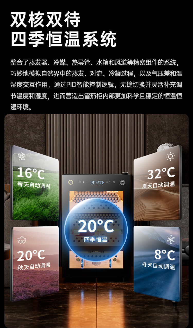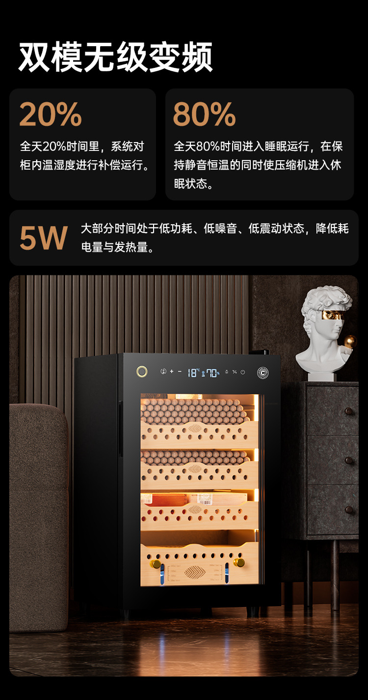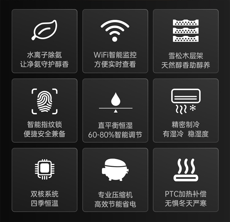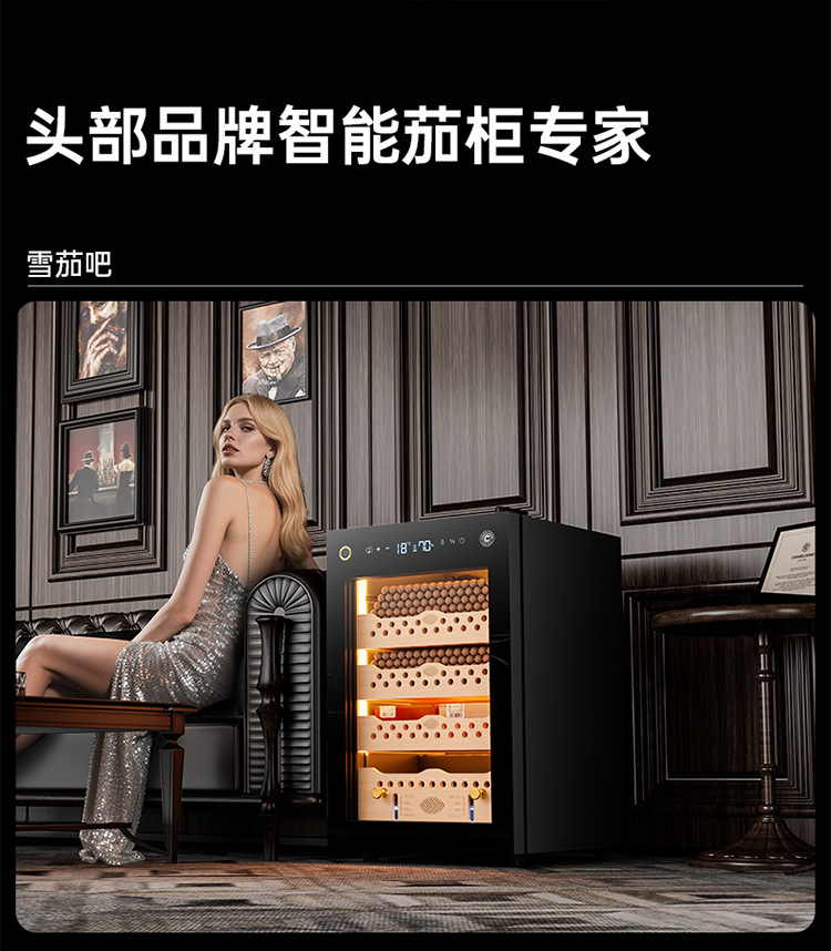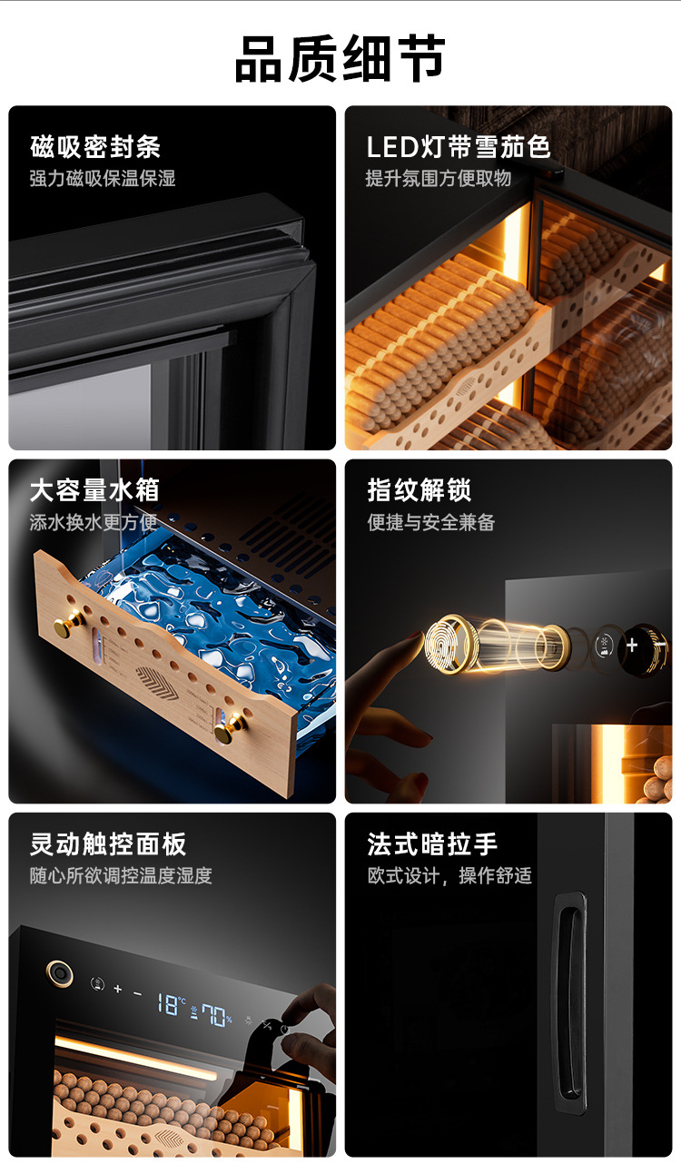 Jialong 지문 잠금 시가 캐비닛 항온 및 습도 시나몬 목재 선반 물 이온 제거 암모니아 및 알코올 WIFI 시가 캐비닛