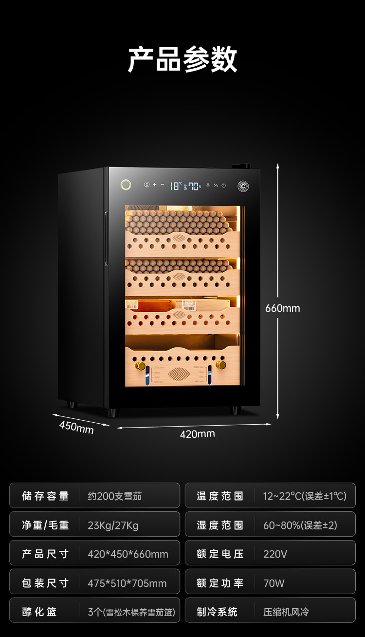 • 70C 시가바구니 모델 [순암모니아 + WiFi + 지문잠금 + 삼나무선반 + 측면조명 스트립 + 약 400개]