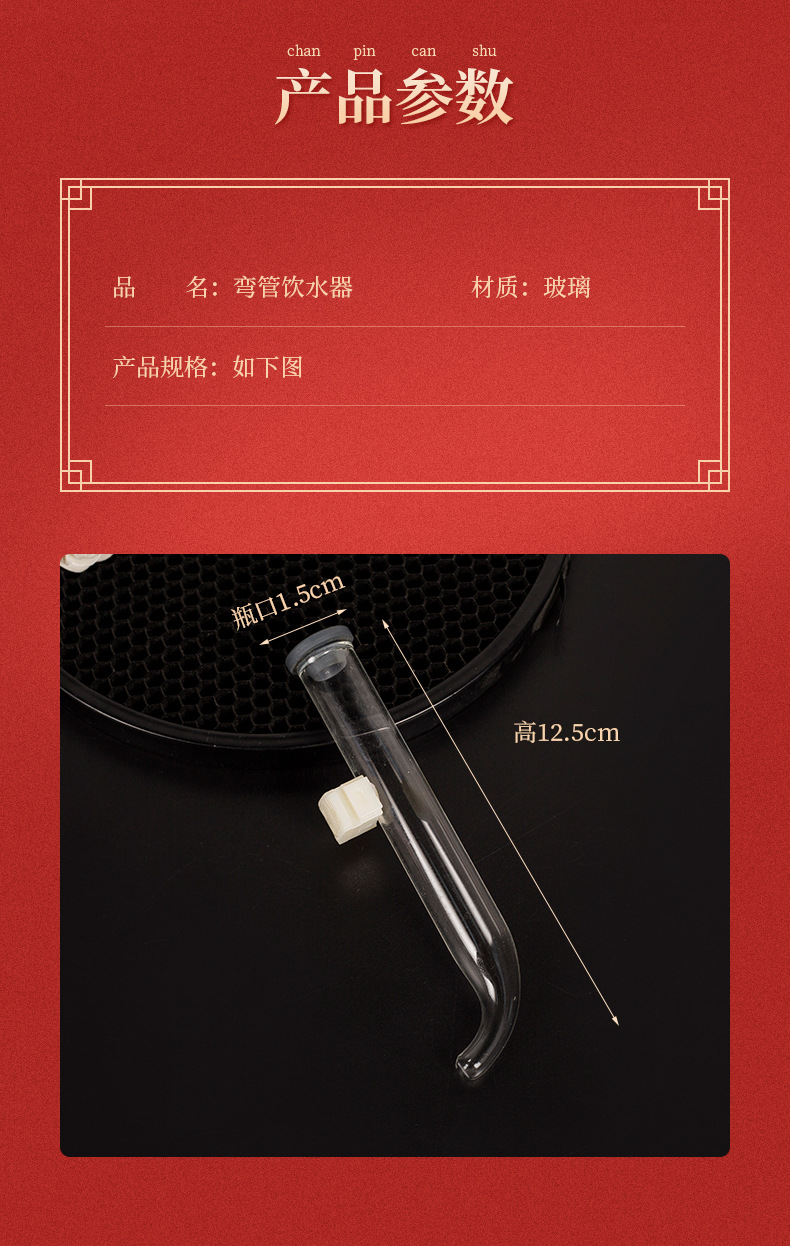 대외 무역 자수 눈 유리 식수대 새로운 스타일 곡선 파이프 모양 자수 눈 식수대 새장 액세서리 도매스토어 가기