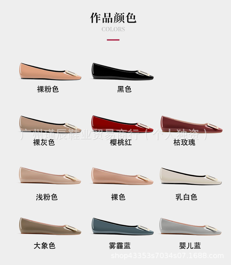 여성용 하이 버전 스퀘어 토 RV 엘리펀트 그레이 스퀘어 버튼 플랫 슈즈 프렌치 하이 엔드 가죽 내부 강화 발레 슈즈스토어 가기